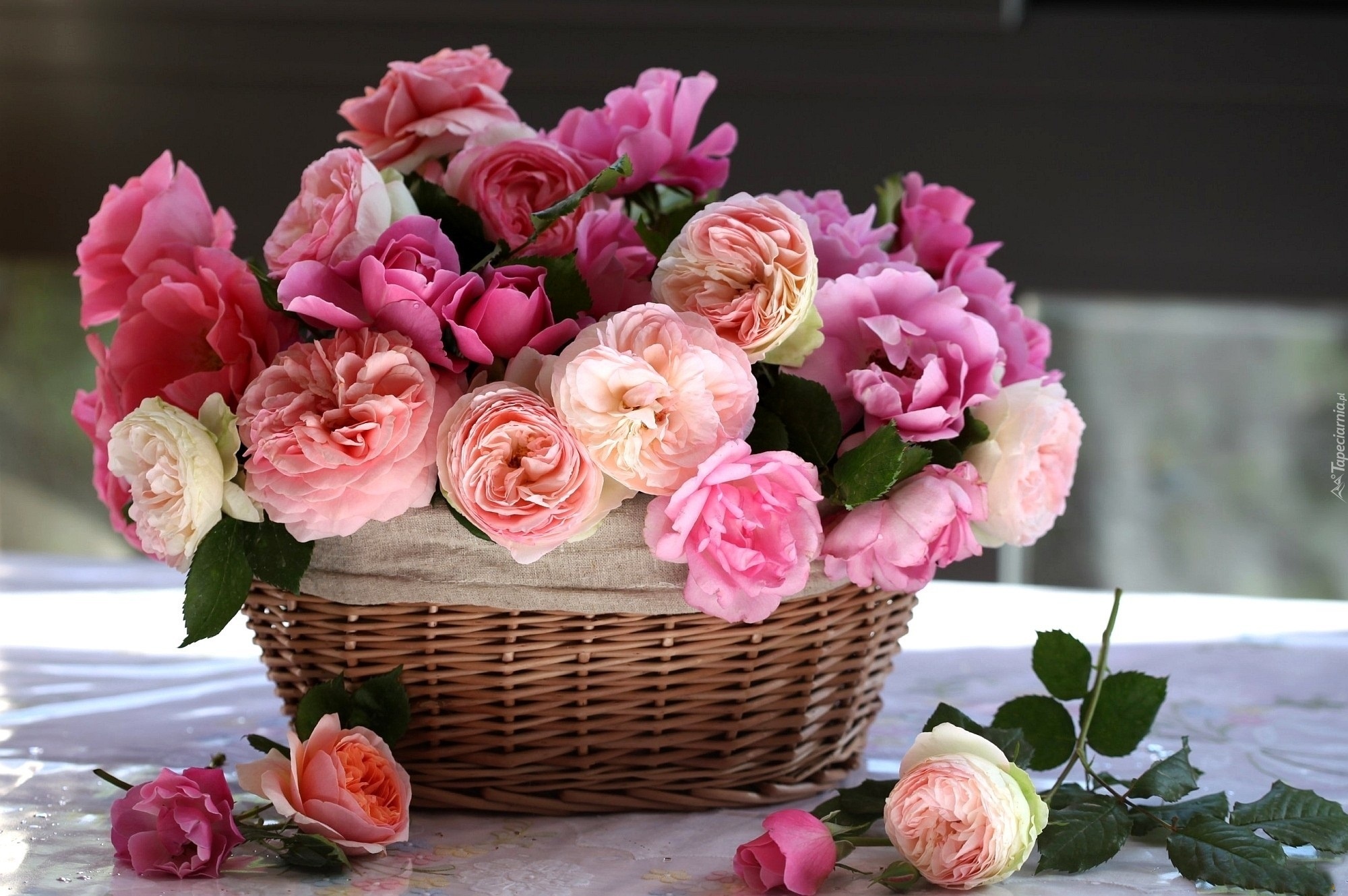 Edytor tapety: Kosz, Różowe, Róże