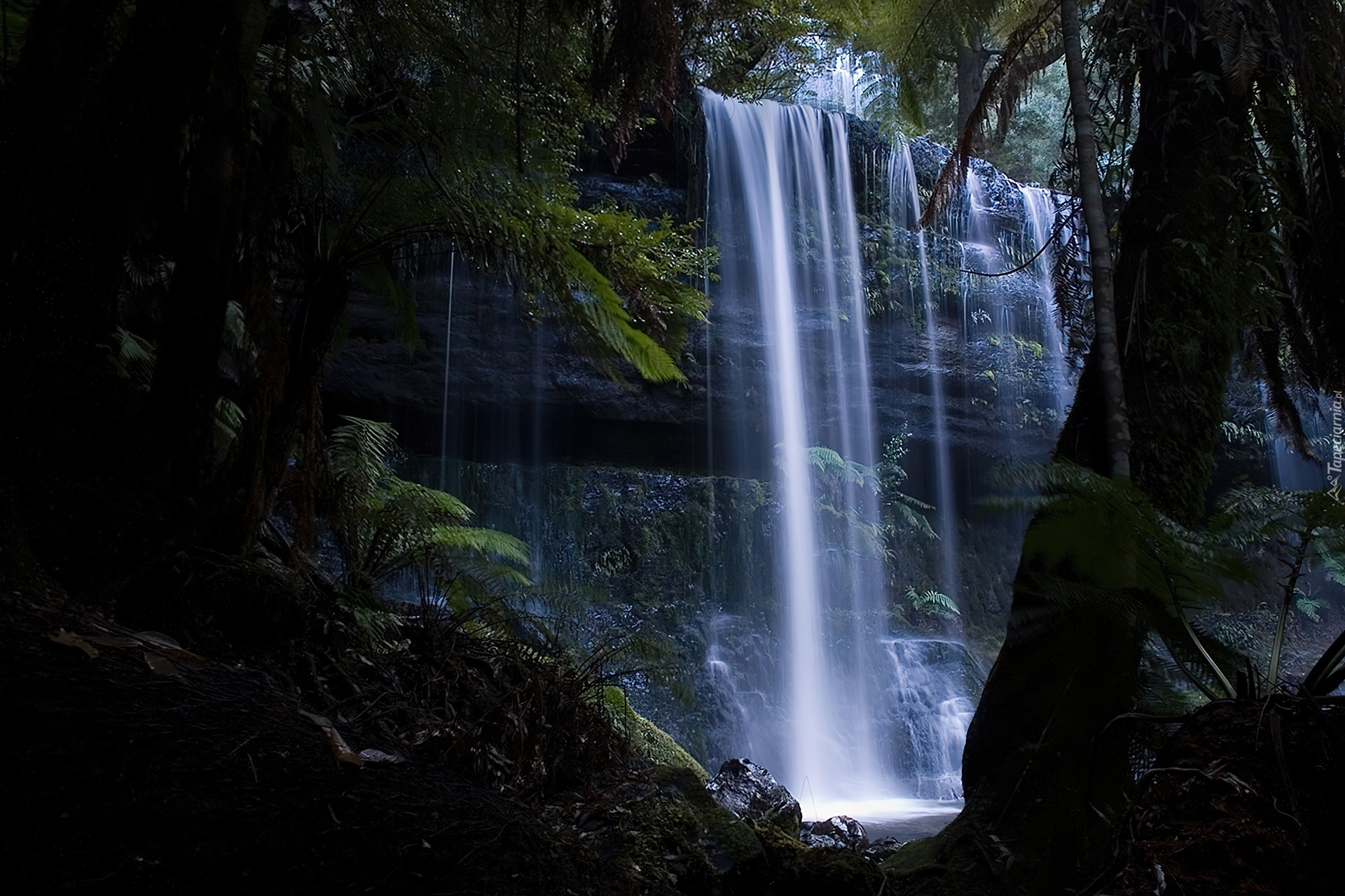 Edytor tapety: Wodospad, Skały, Rośliny