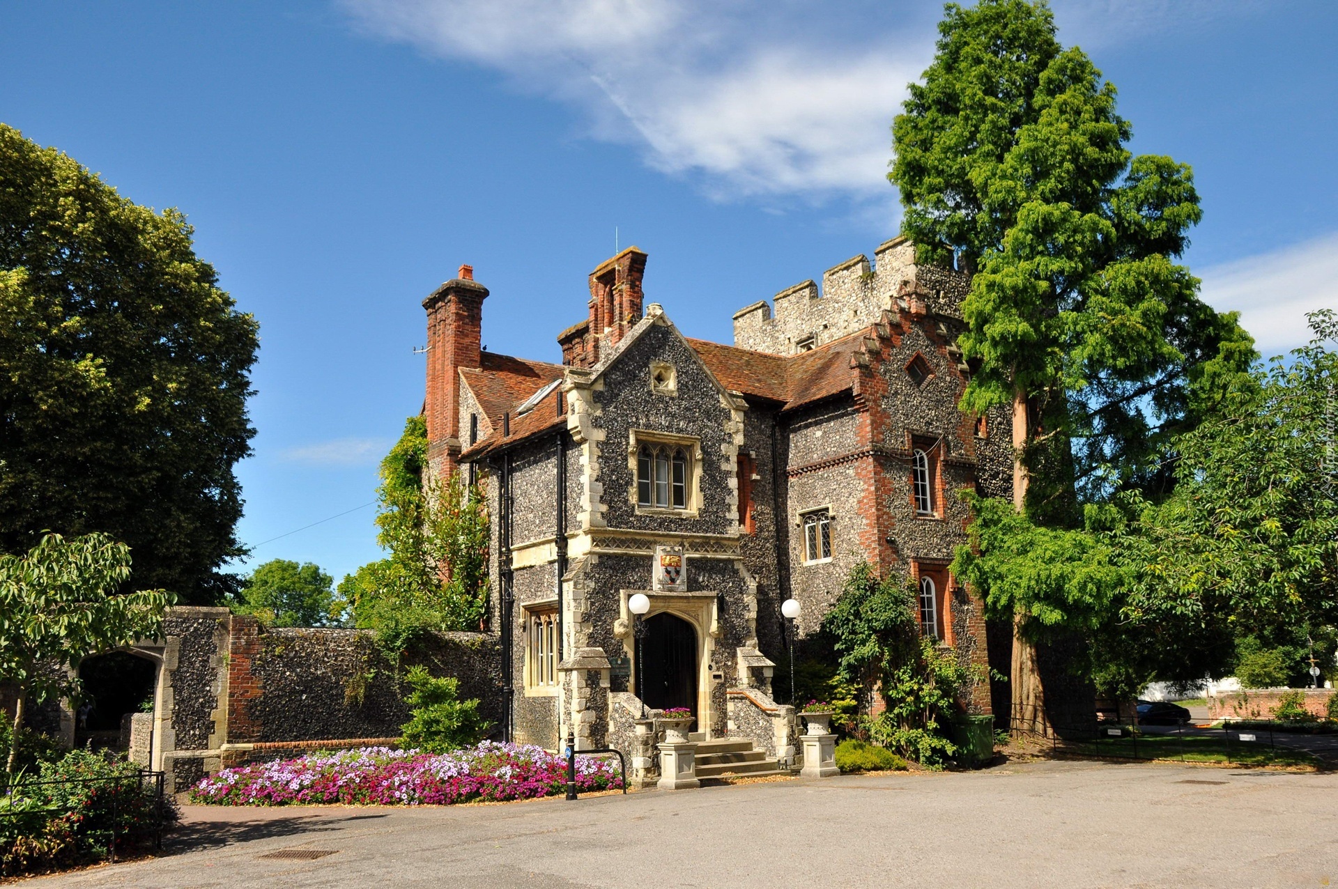 Edytor tapety: Dworek, Kwiaty, Drzewa
