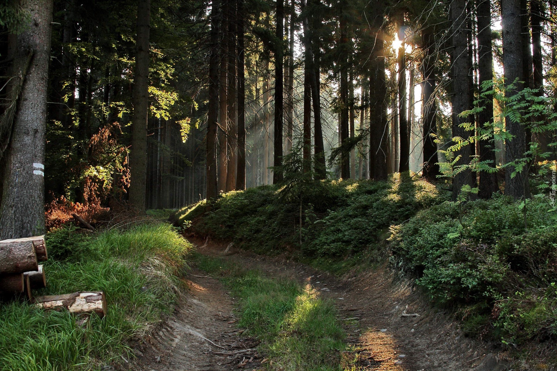 Edytor tapety: Leśna, Droga, Trawa, Drzewa