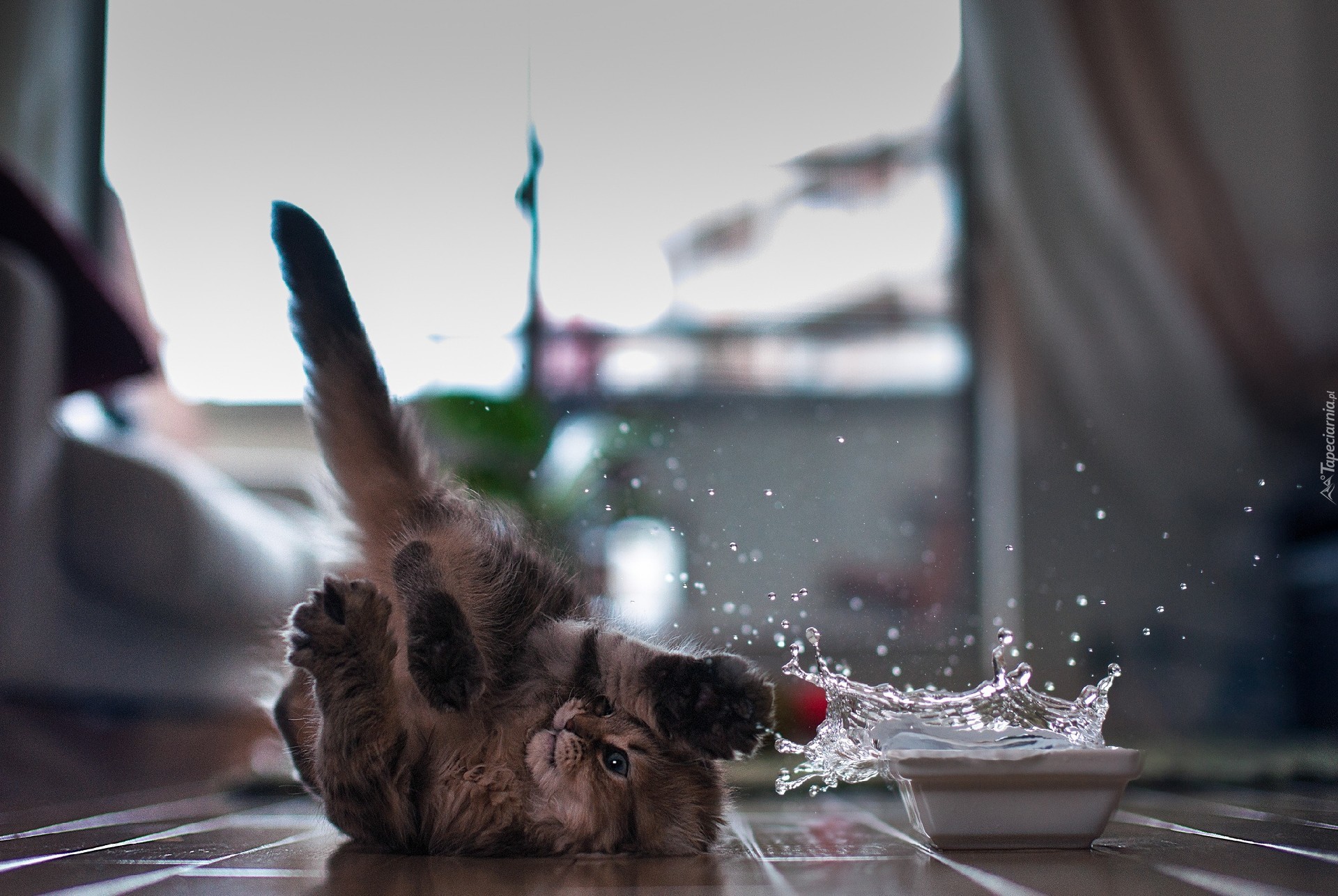 Edytor tapety: Kotek, Miska, Woda, Podłoga