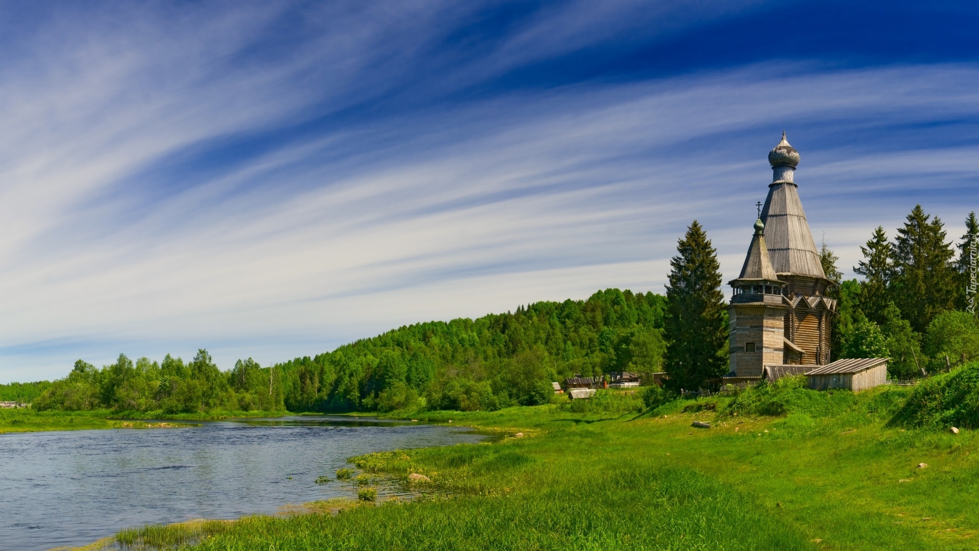 Edytor tapety: Kościółek, Prawosławny, Drzewa, Woda