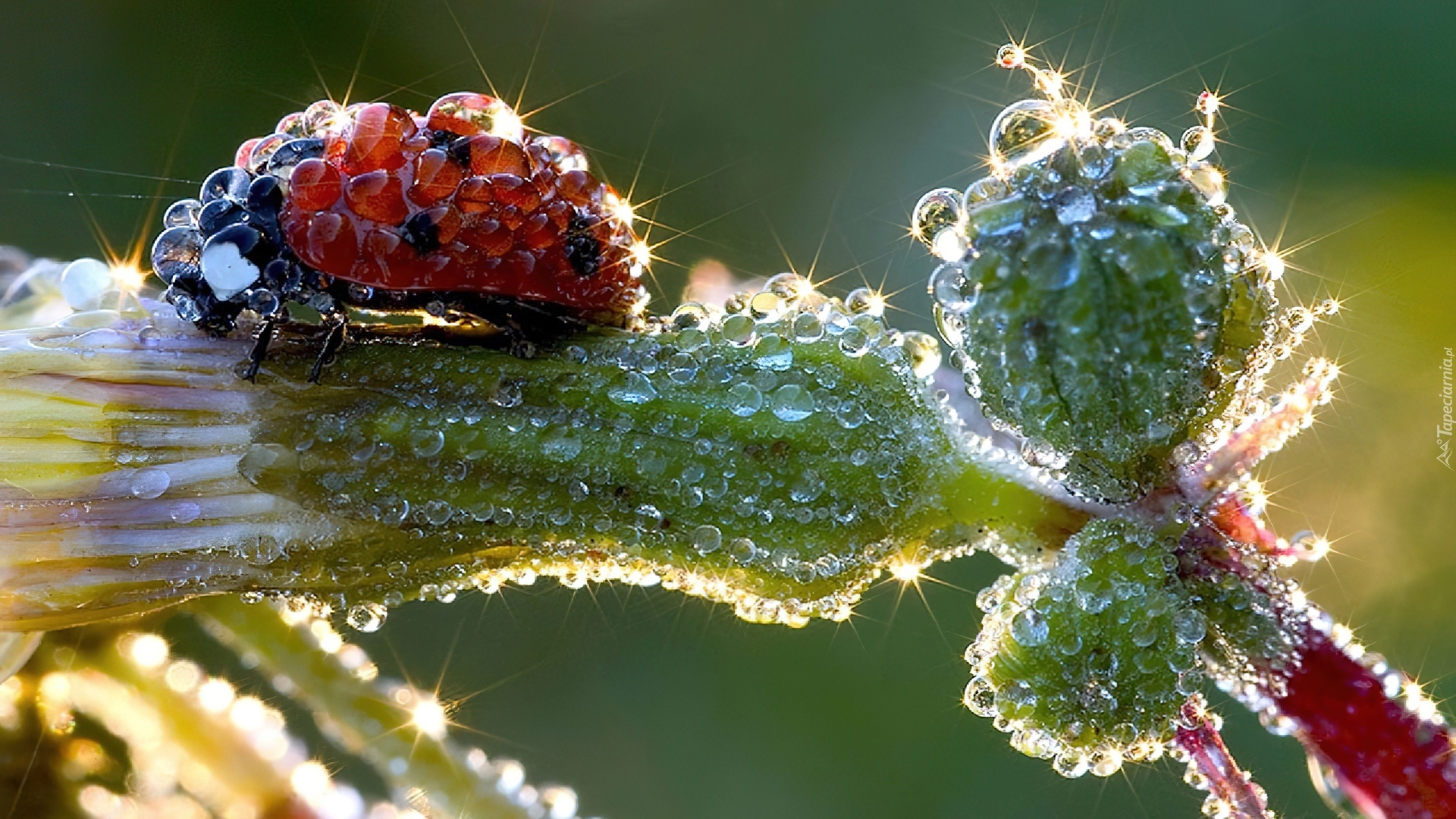 Edytor tapety: Biedronka, Kwiat, Krople, Wody