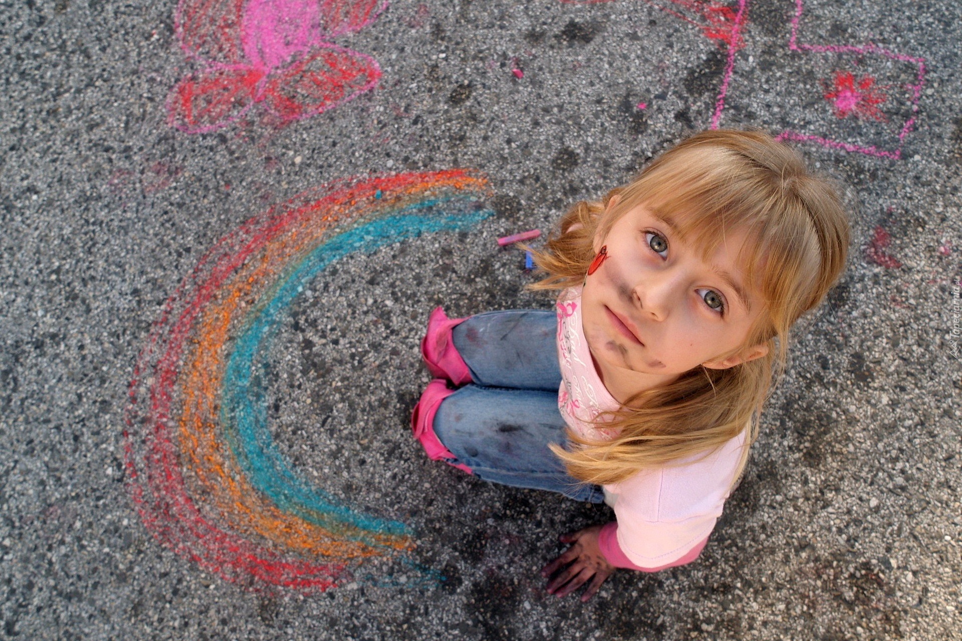 Edytor tapety: Dziewczynka, Spojrzenie, Kredy
