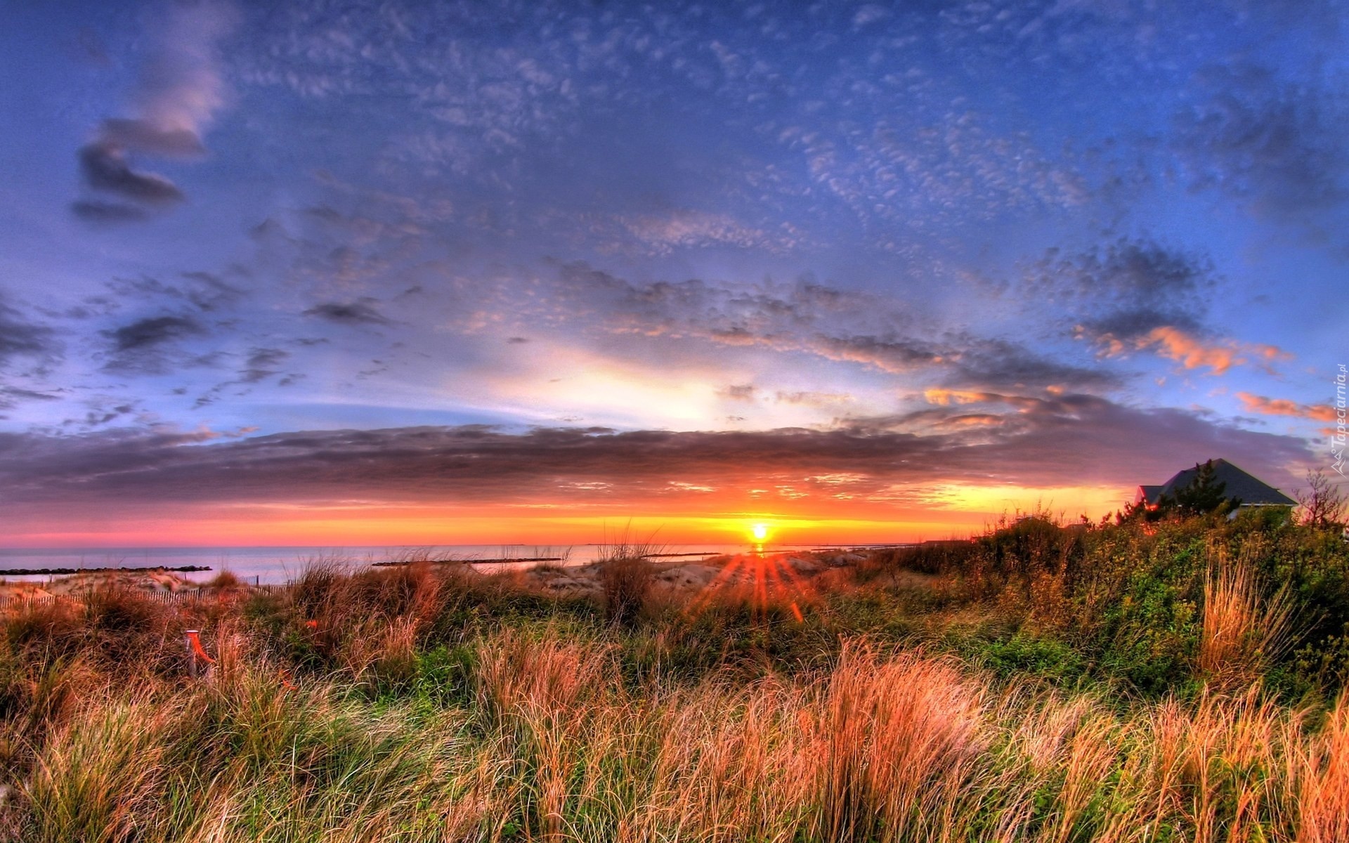 Edytor tapety: Morze, Promienie, Słońca, Trawa