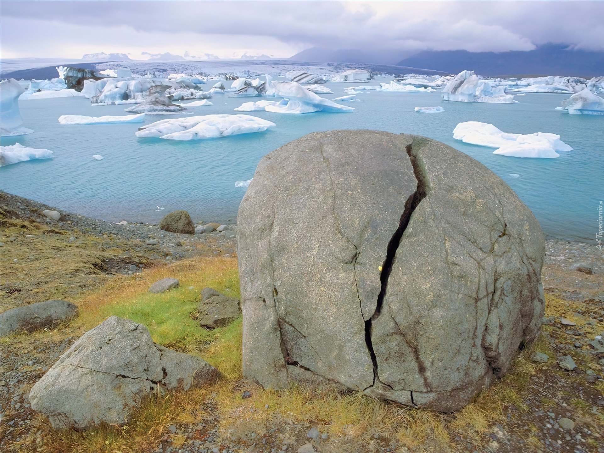 Edytor tapety: Kamień, Trawa, Woda, Lód