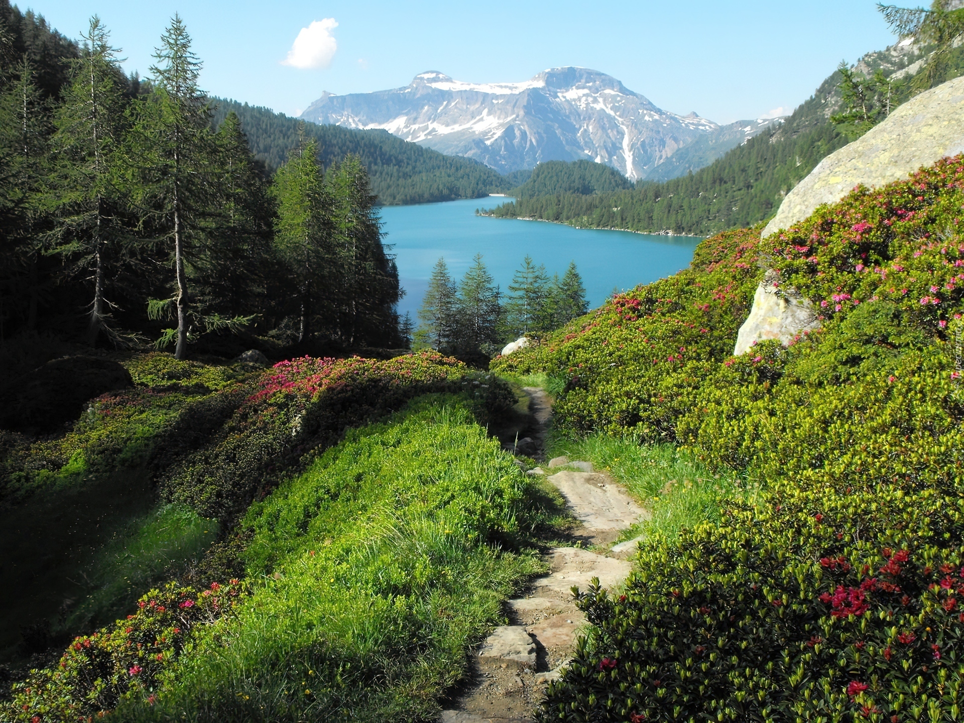 Edytor tapety: Góry, Jezioro, Ścieżka