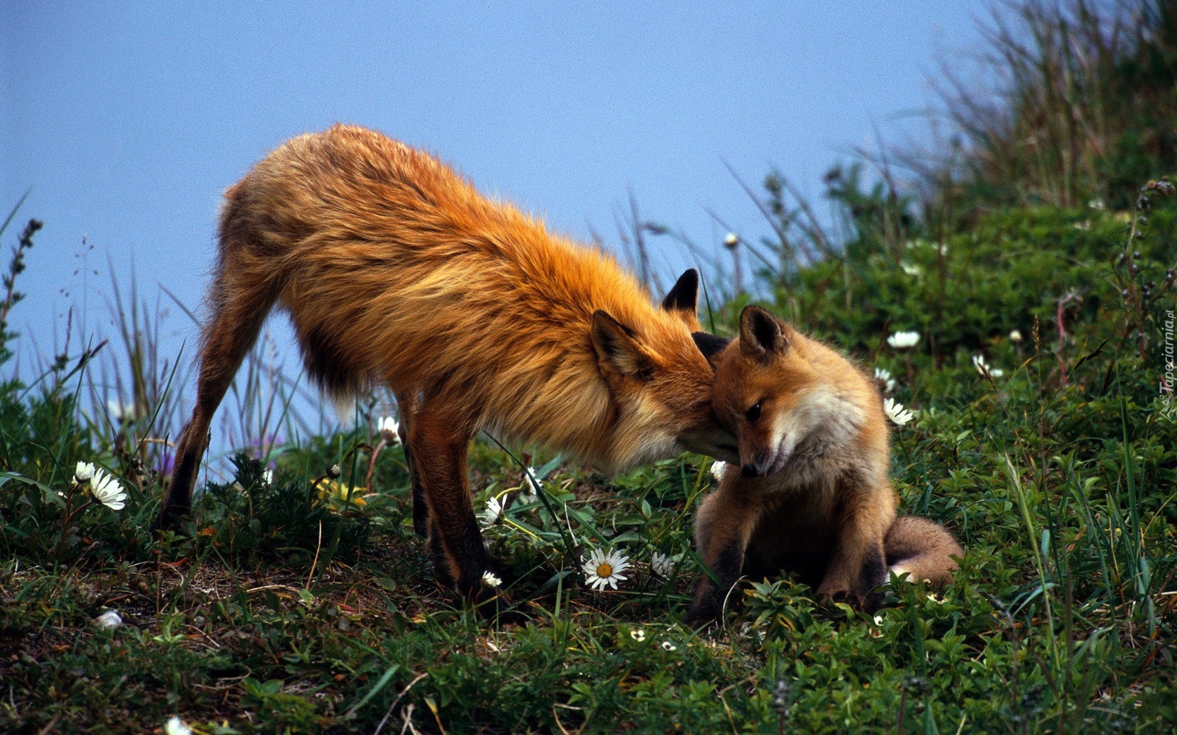 Edytor tapety: Dwa, Lisy, Trawa, Zieleń