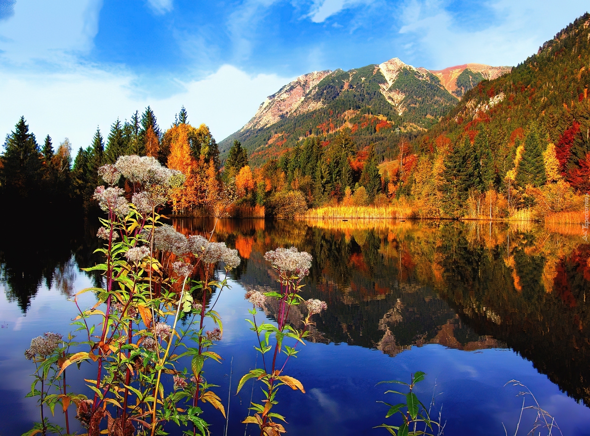 Edytor tapety: Jezioro, Góry, Las, Jesień