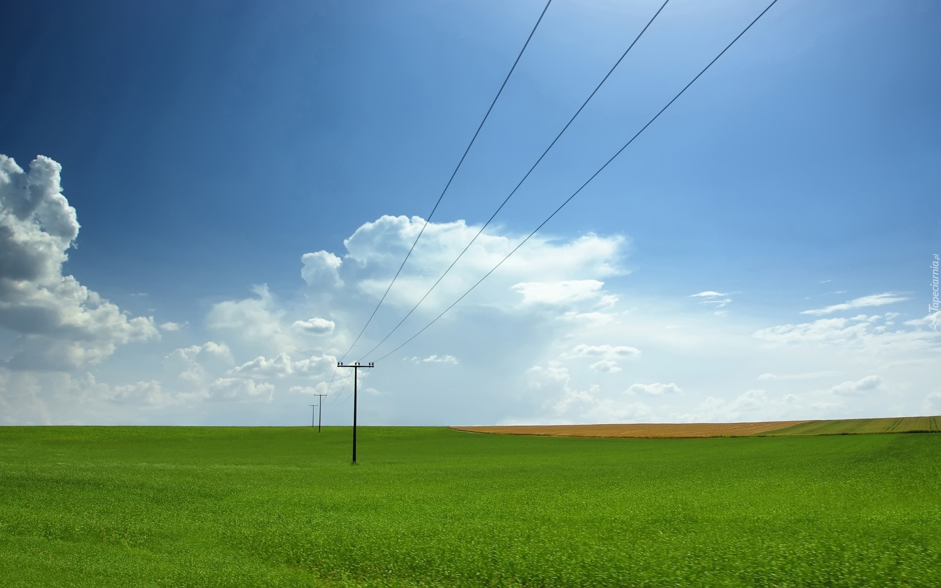 Edytor tapety: Duża, Łąka, Niebo, Chmury, Linia, Energetyczna