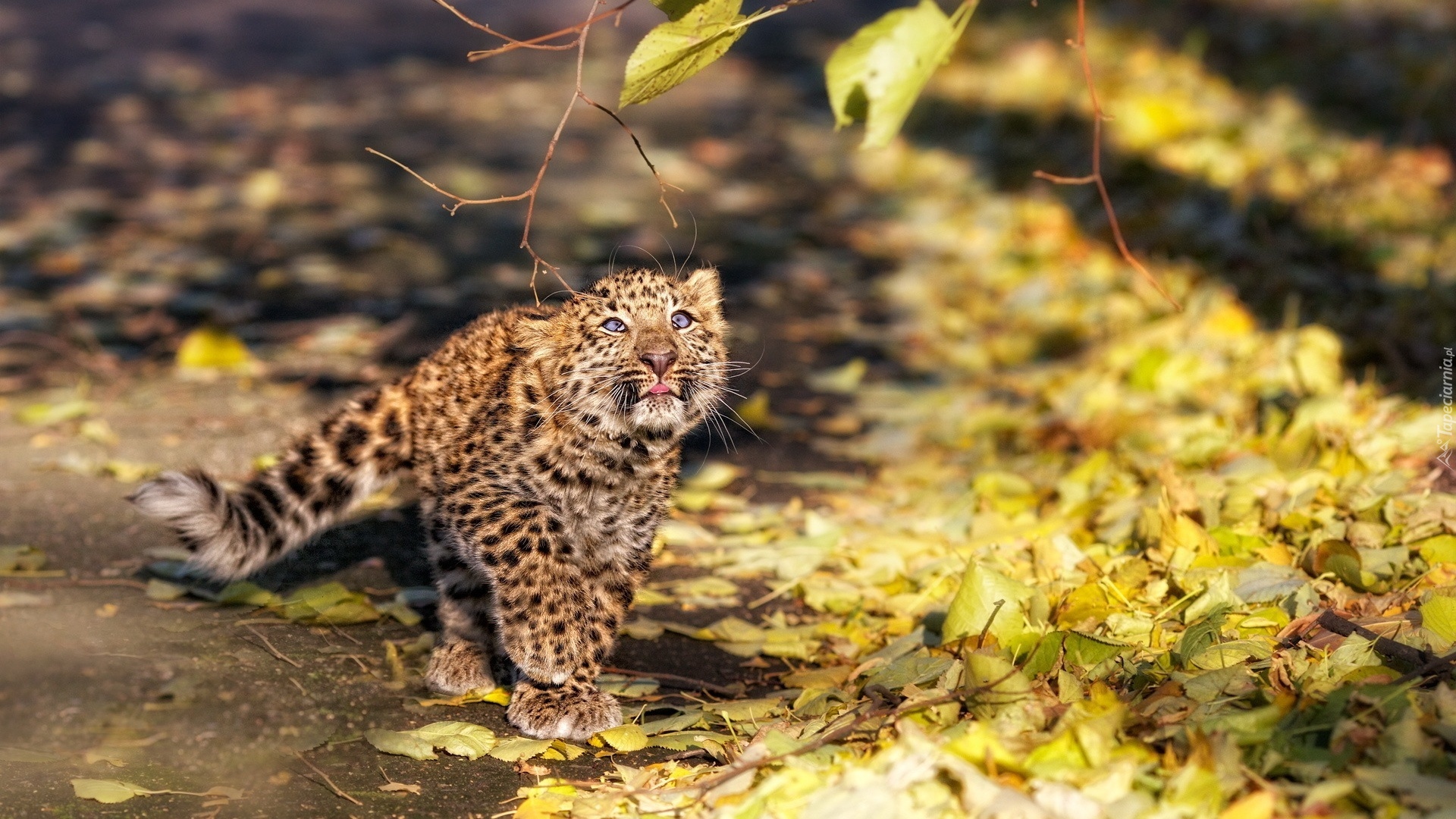 Edytor tapety: Mały, Lampart, Jesienne, Liście