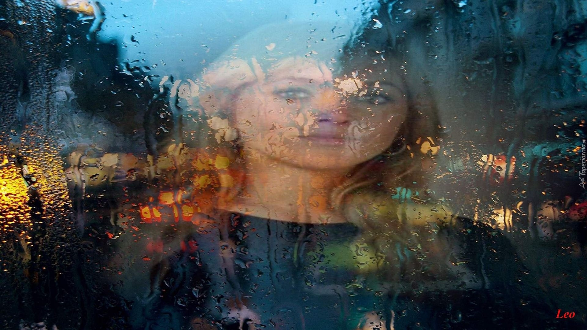 Edytor tapety: Dziewczyna, Szyba, Woda