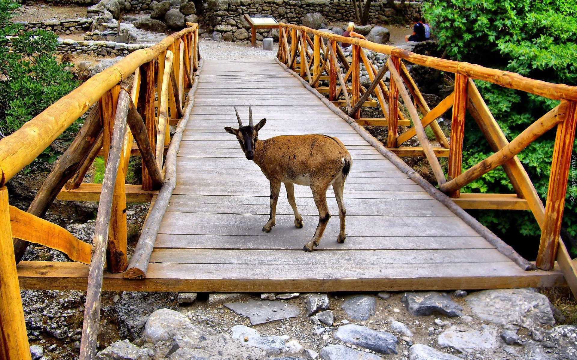 Edytor tapety: Koza, Drewniany, Most, Kamienie