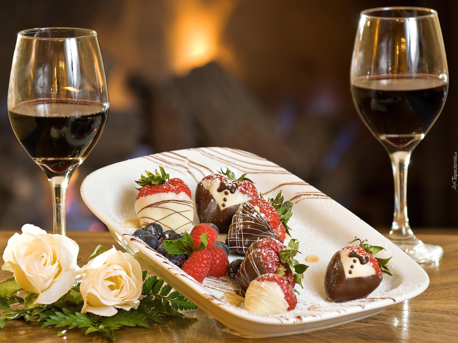 Edytor tapety: Kolorowe, Truskawki, Wino