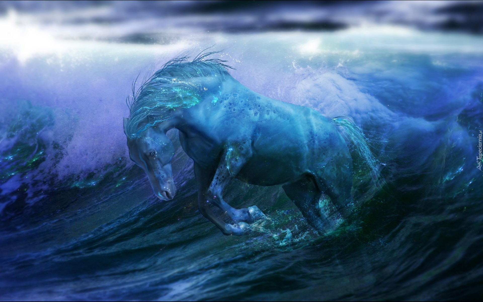 Edytor tapety: Koń, Fale
