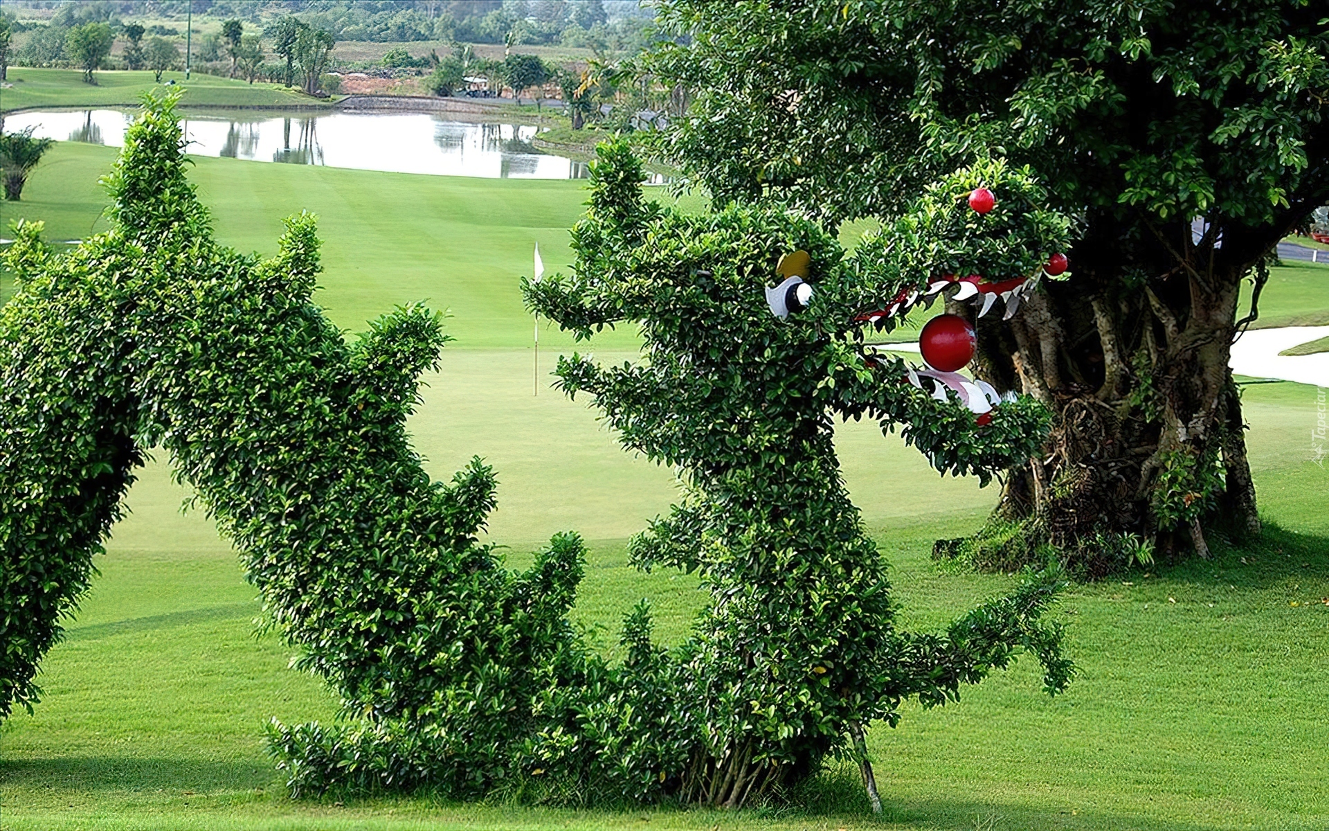 Edytor tapety: Ogród, Smok, Trawa, Drzewo