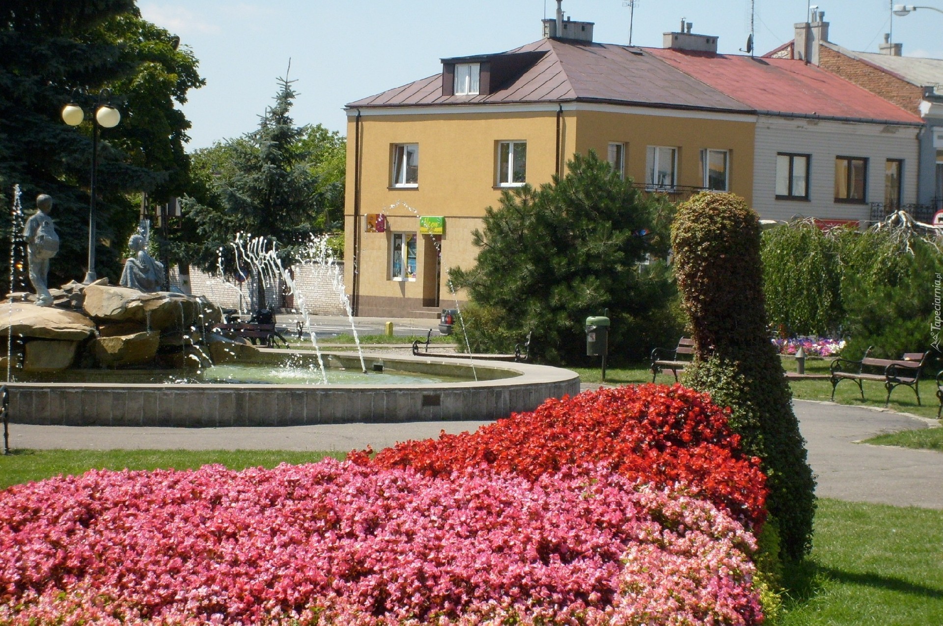 Edytor tapety: Ptak, Kwiaty, Fontanna, Dom