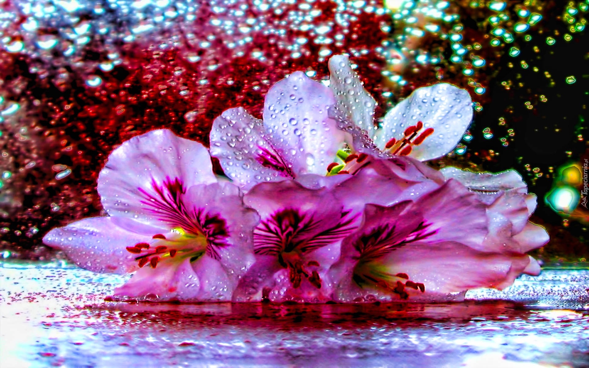 Edytor tapety: Kwiaty, Deszcz, Woda, Krople, Lilia