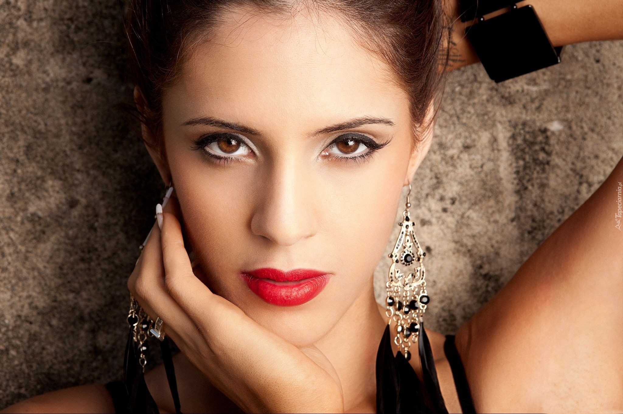 Edytor tapety: Piękna, Kobieta, Czerwone, Usta, Kolczyki