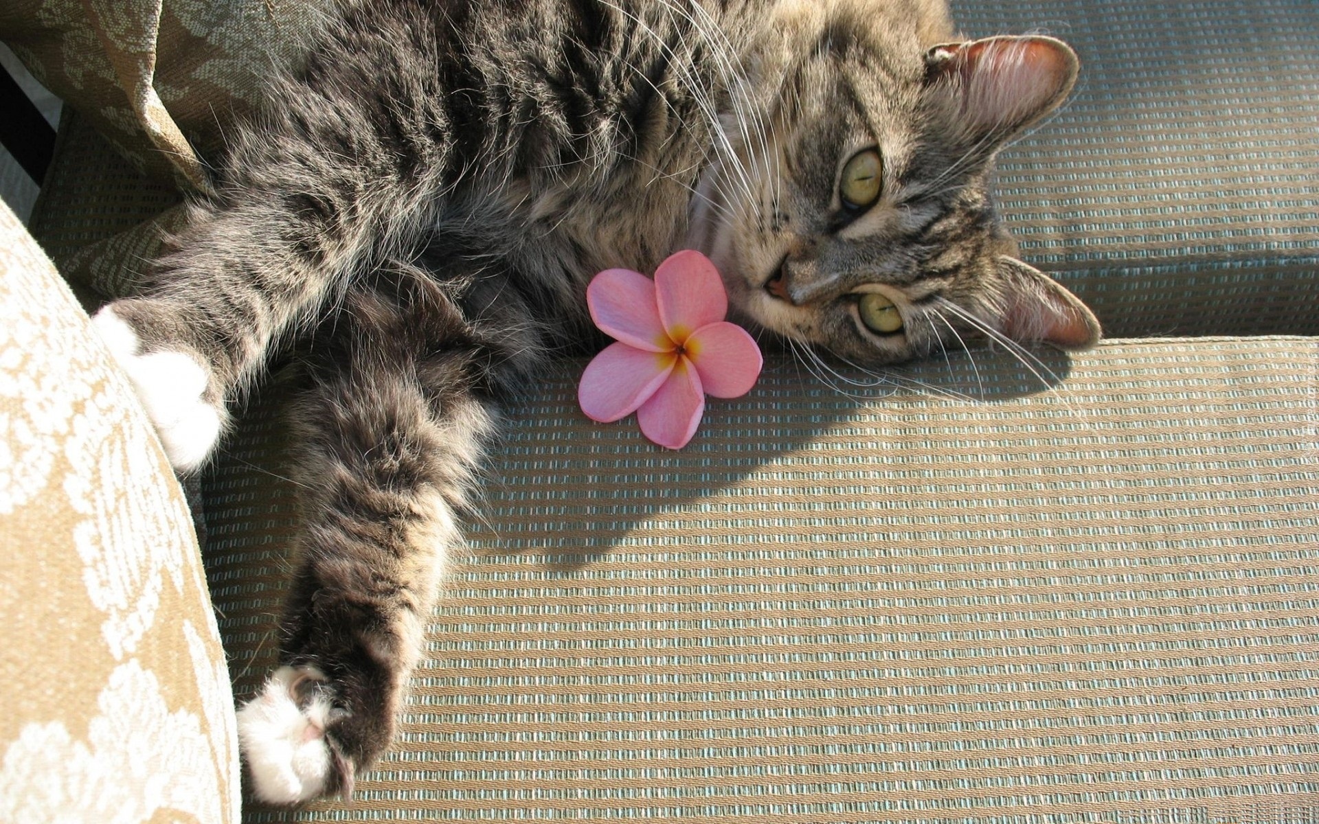Edytor tapety: Szary, Kot, Kanapa, Kwiatuszek