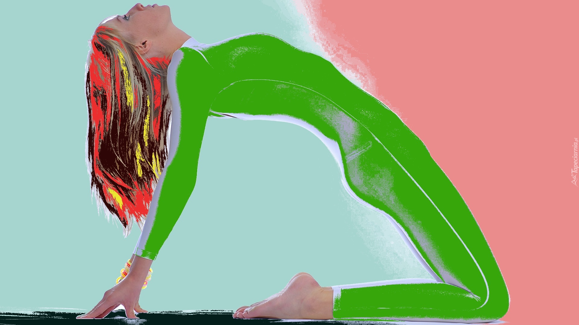 Edytor tapety: Grafika, Komputerowa, Kobieta, Zielony, Strój, Czerwone, Włosy