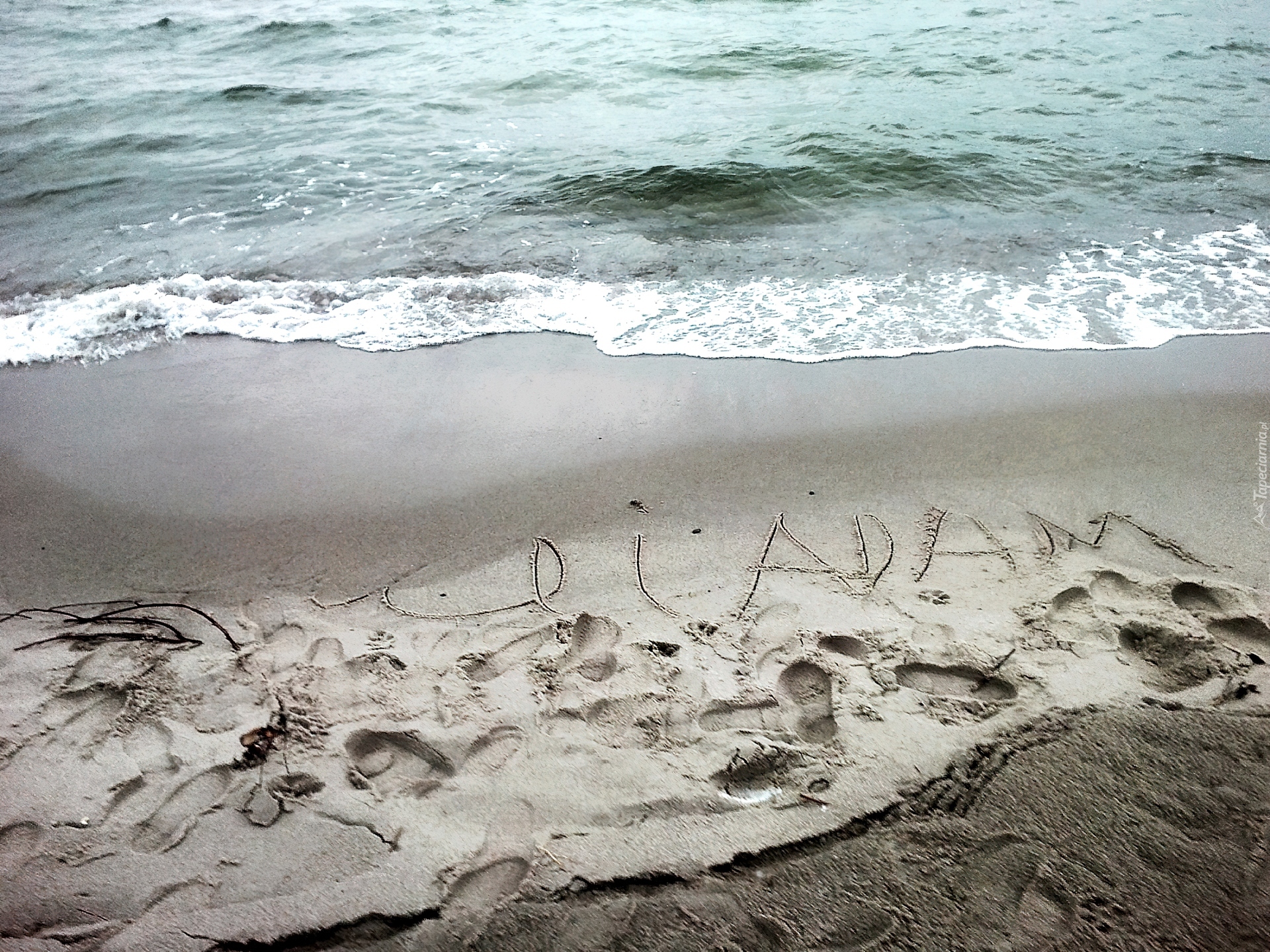 Edytor tapety: Morze, Plaża, Napis