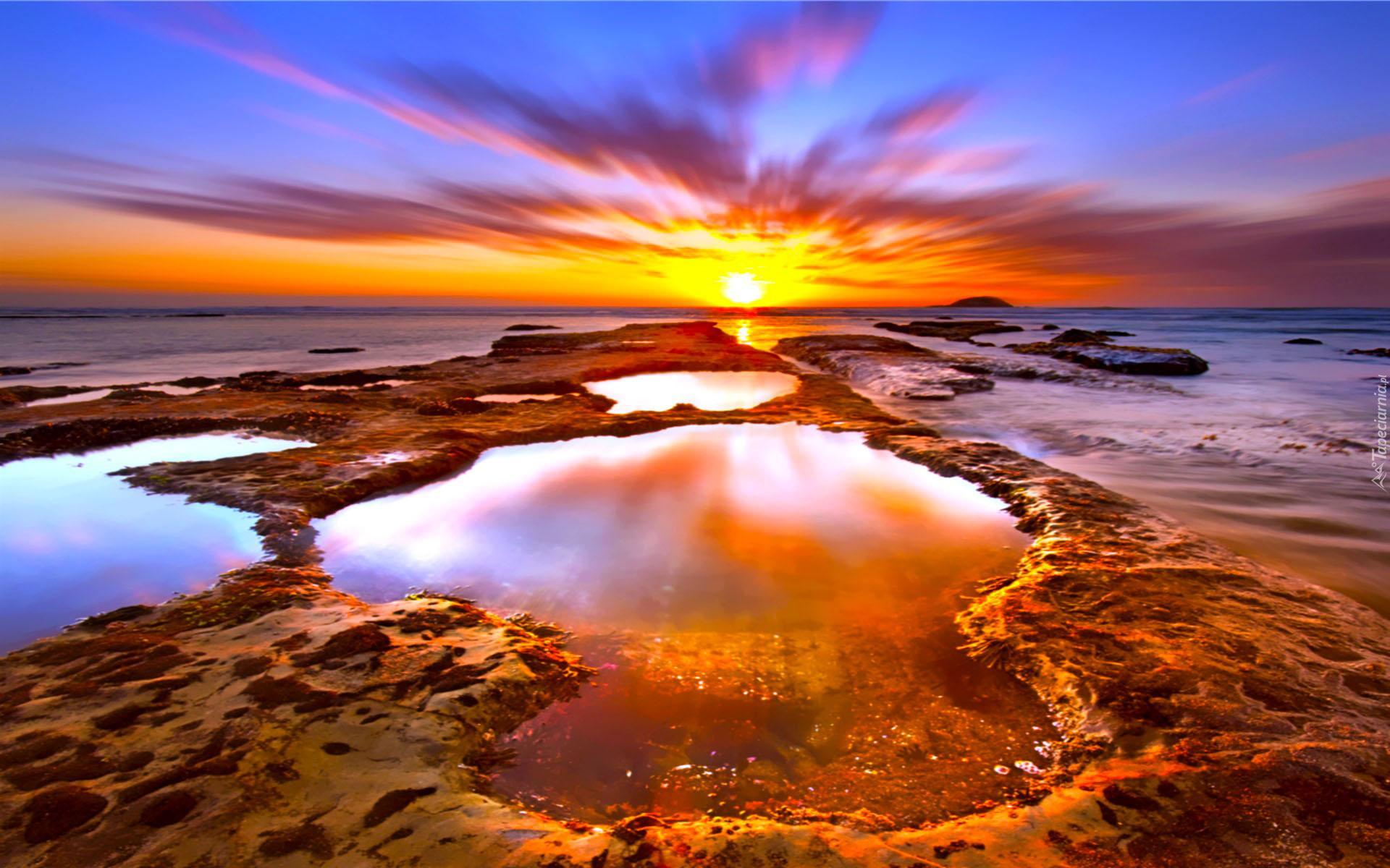 Edytor tapety: Zachód, Słońca, Morze, Skałki