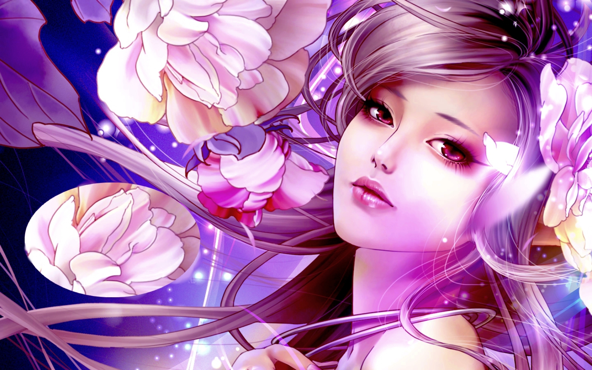 Edytor tapety: Dziewczyna, Kwiaty, Spojrzenie