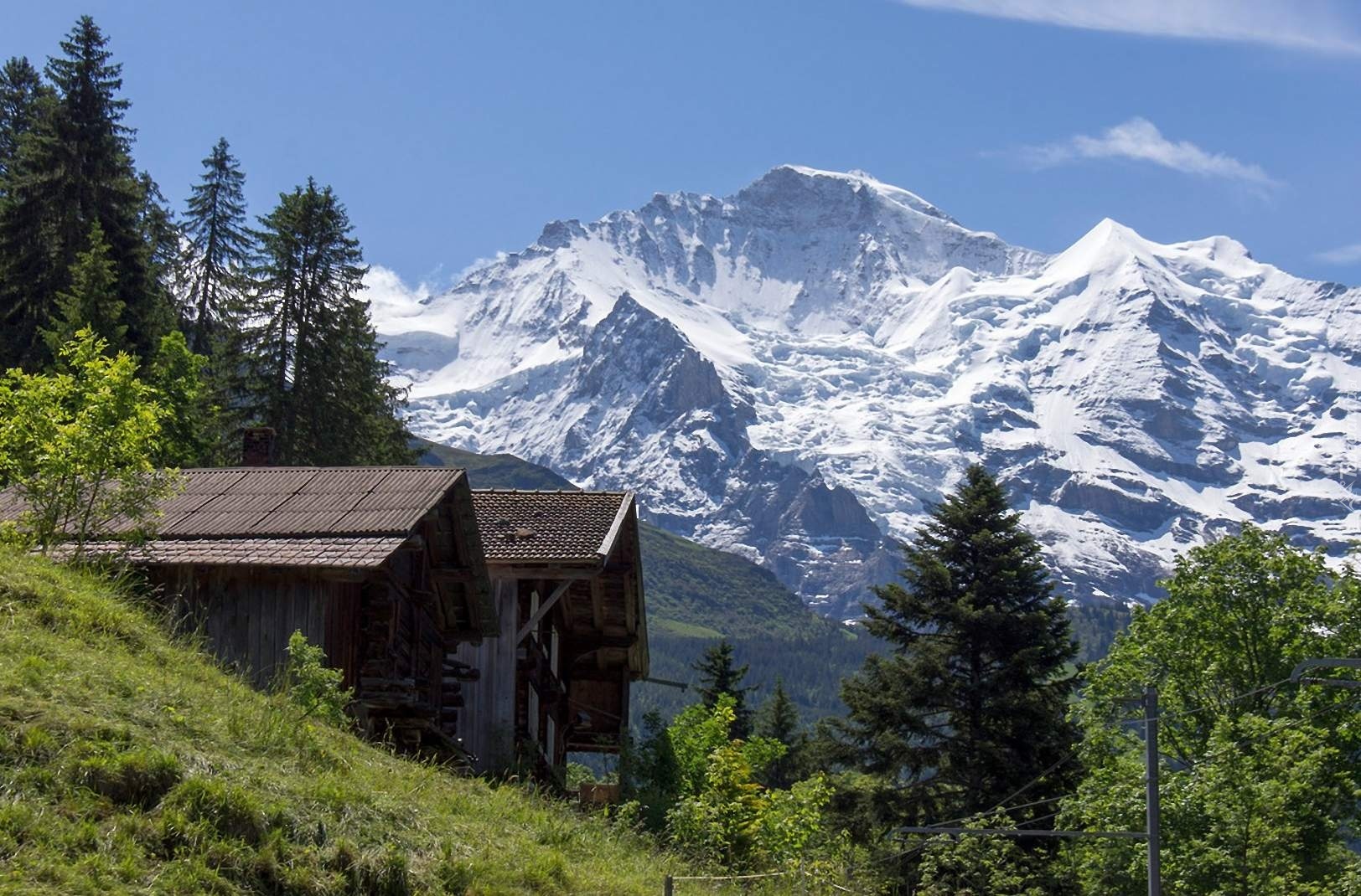 Edytor tapety: Domki, Drzewa, Góry