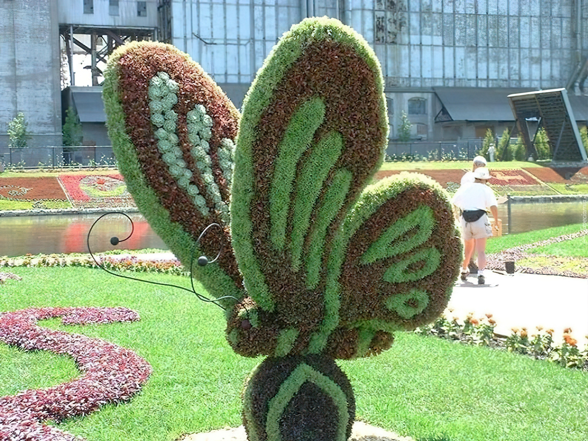 Edytor tapety: Klomb, Motyl, Kwiaty, Trawa