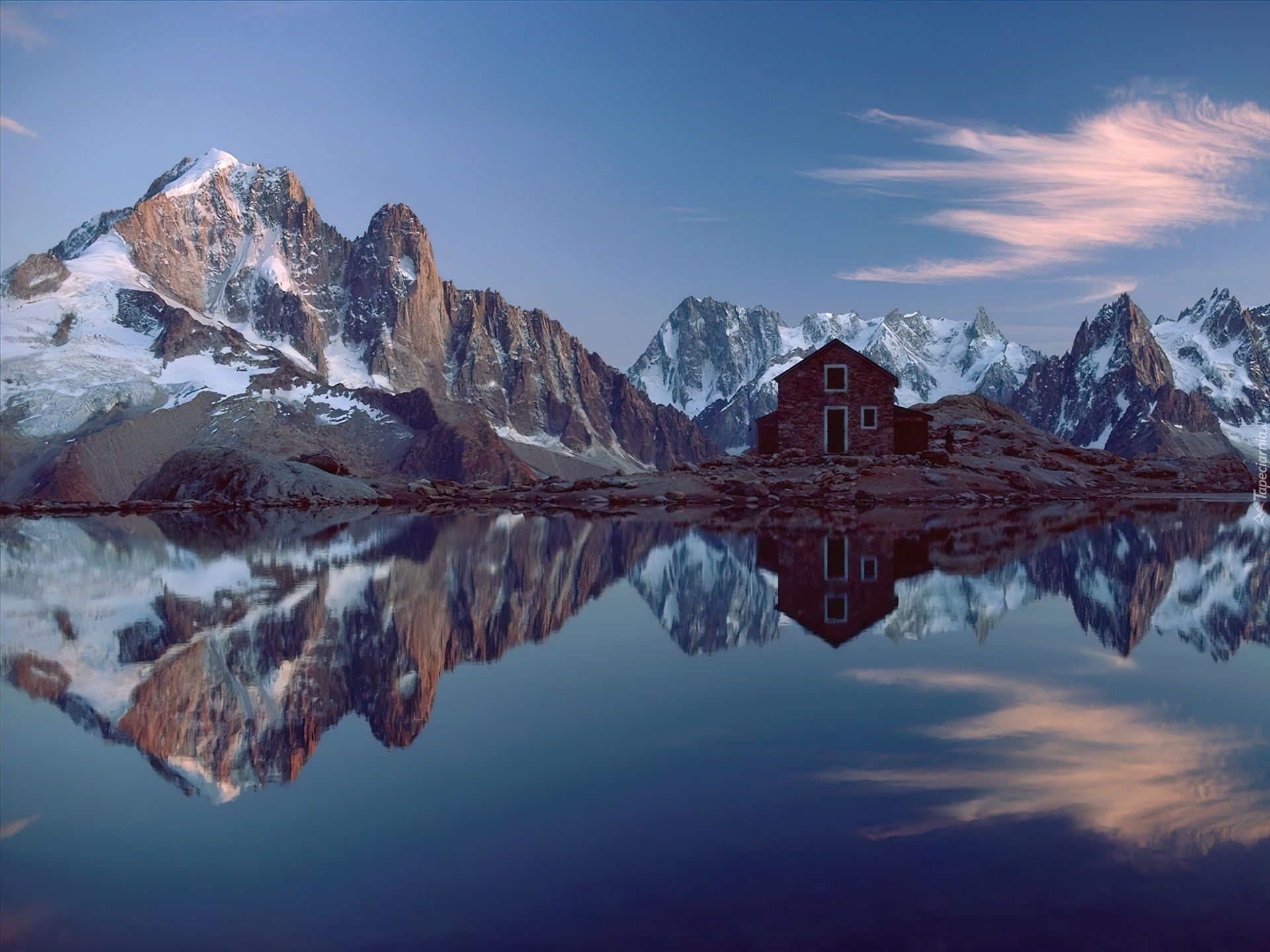 Edytor tapety: Francja, Alpy, Woda, Domek, Odbicie