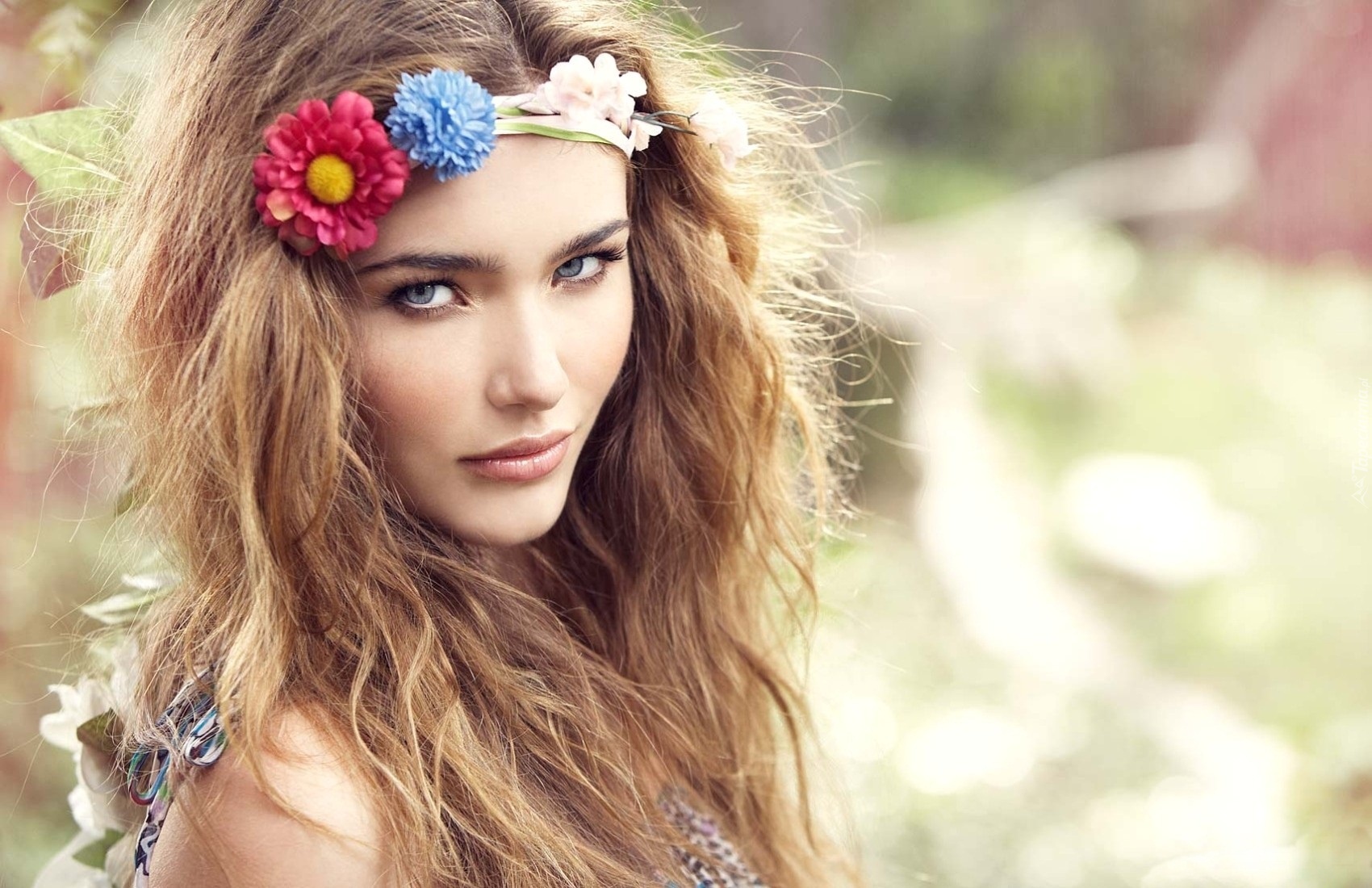 Edytor tapety: Piękna, Kobieta, Kwiaty, We, Włosach