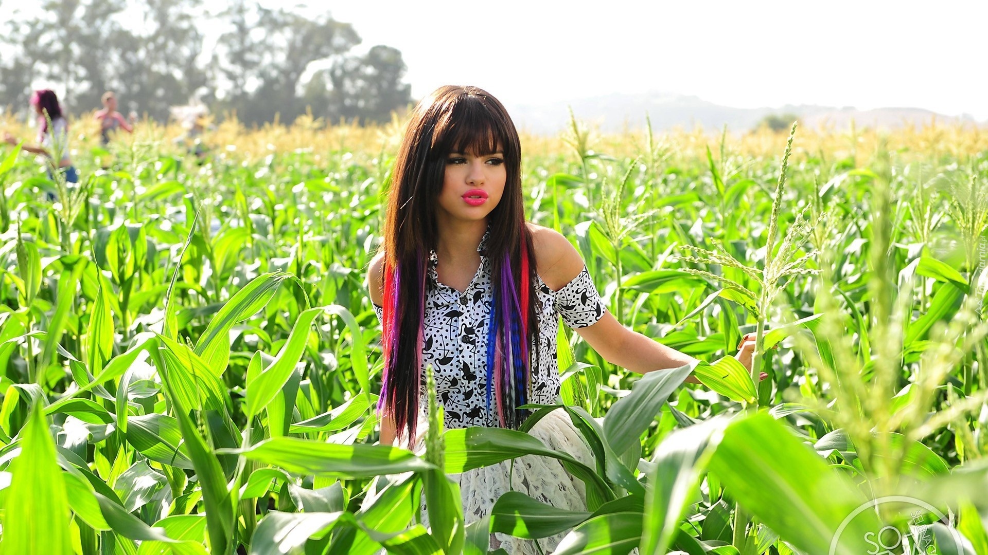 Edytor tapety: Kobieta, Kolorowe, Włosy, Pole, Kukurydzy