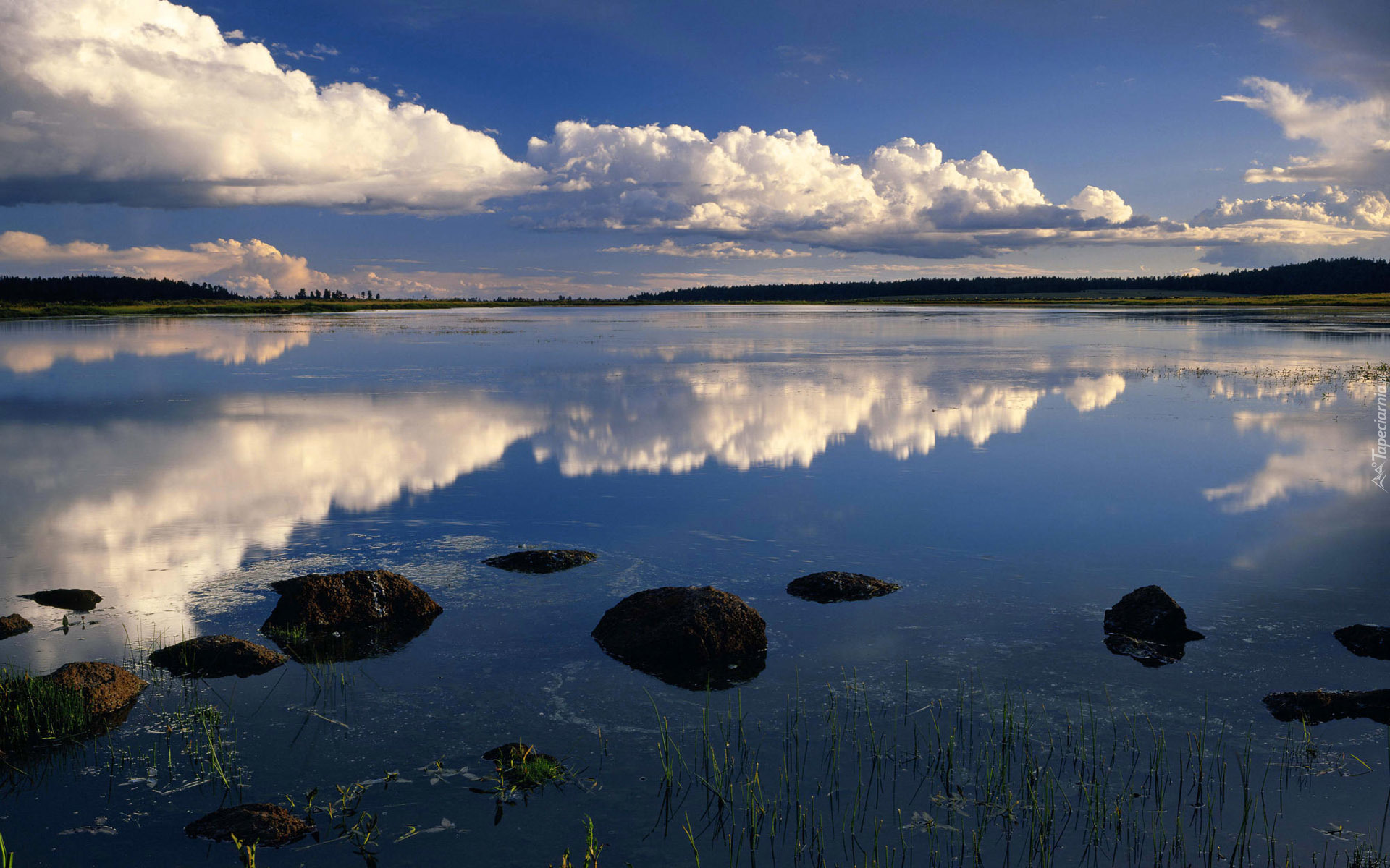 Edytor tapety: Jezioro, Chmury, Odbicie