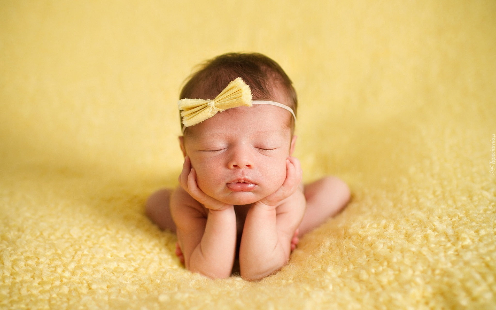 Edytor tapety: Dziecko, Żółta, Kokardka, Kocyk