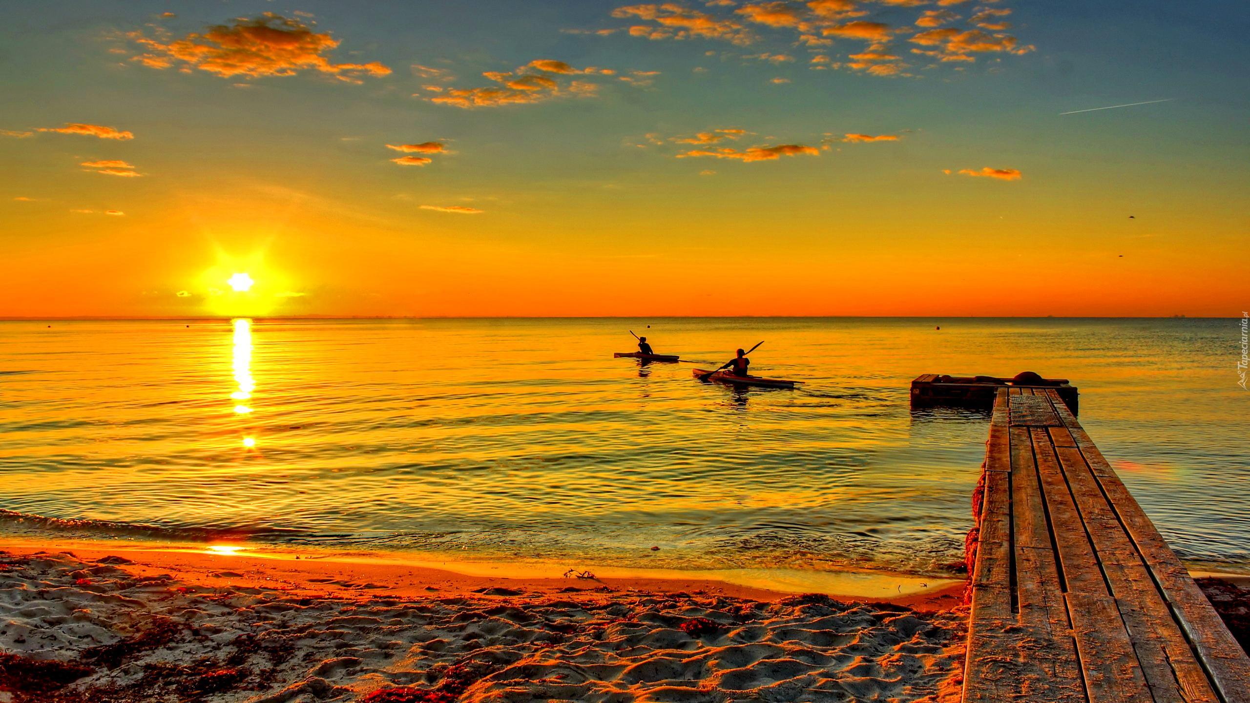 Edytor tapety: Pomost, Kajaki, Plaża, Morze