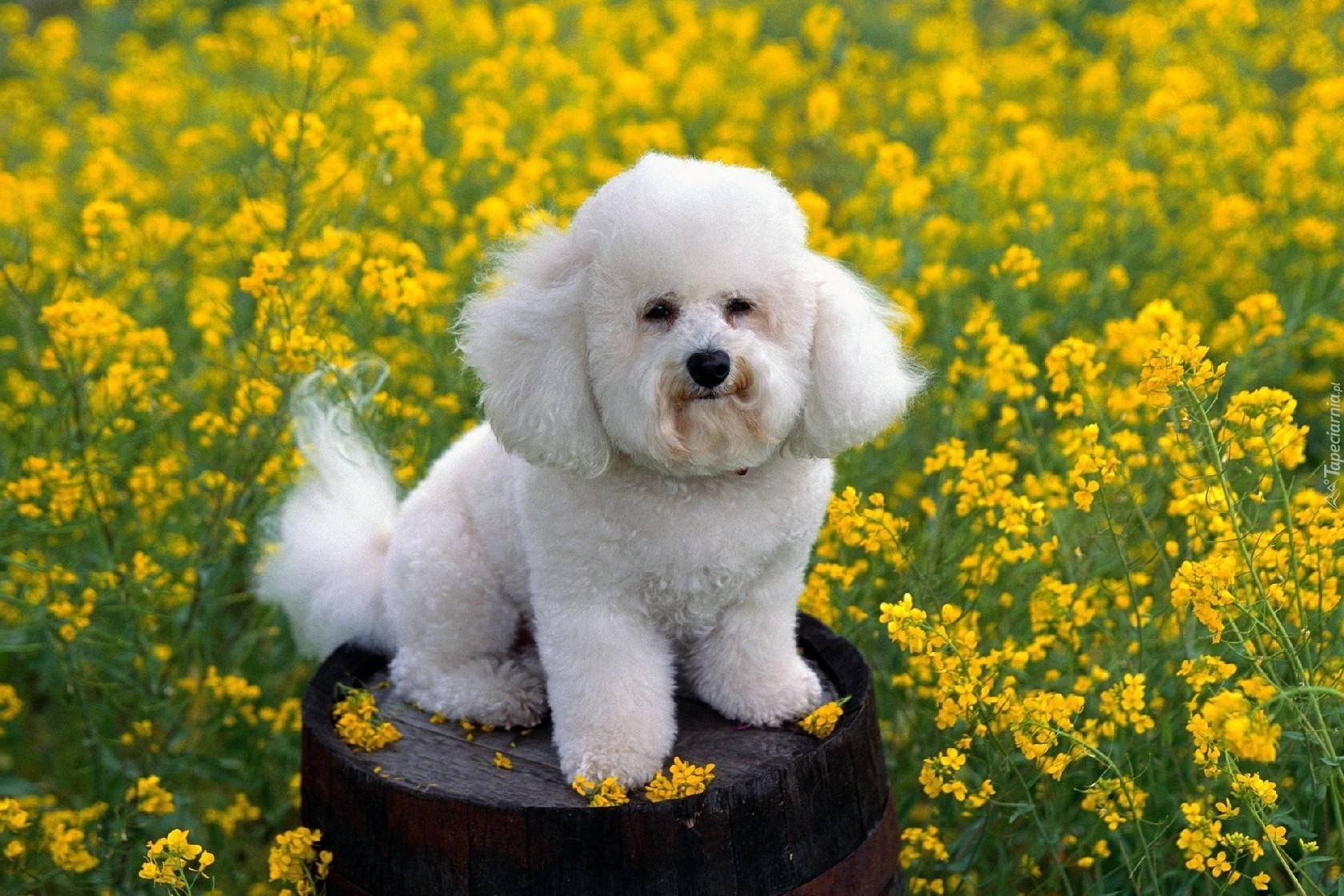 Edytor tapety: Biały, Pudelek, Żółte, Kwiaty