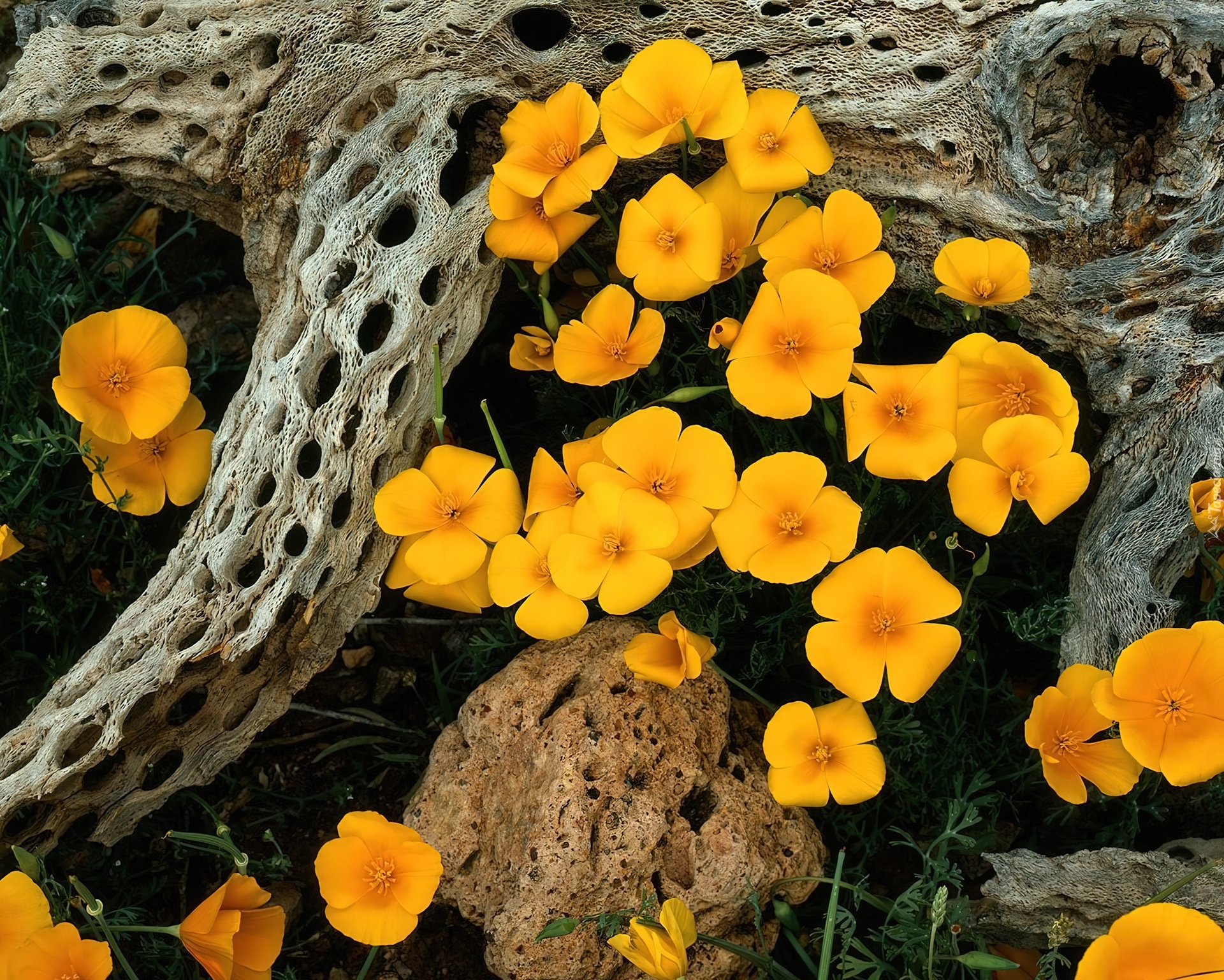 Edytor tapety: Pomarańczowe, Kwiatki, Korzeń, Drzewa