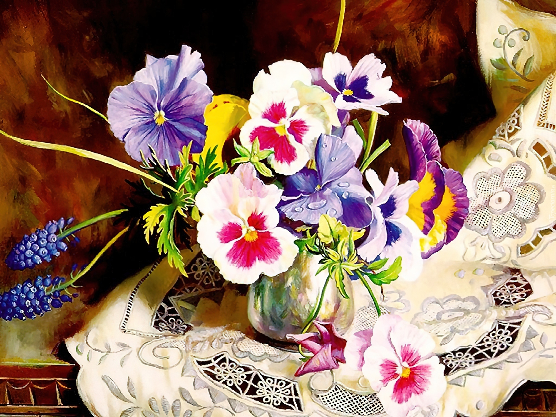 Edytor tapety: Obraz, Bukiet, Serweta, Bratki