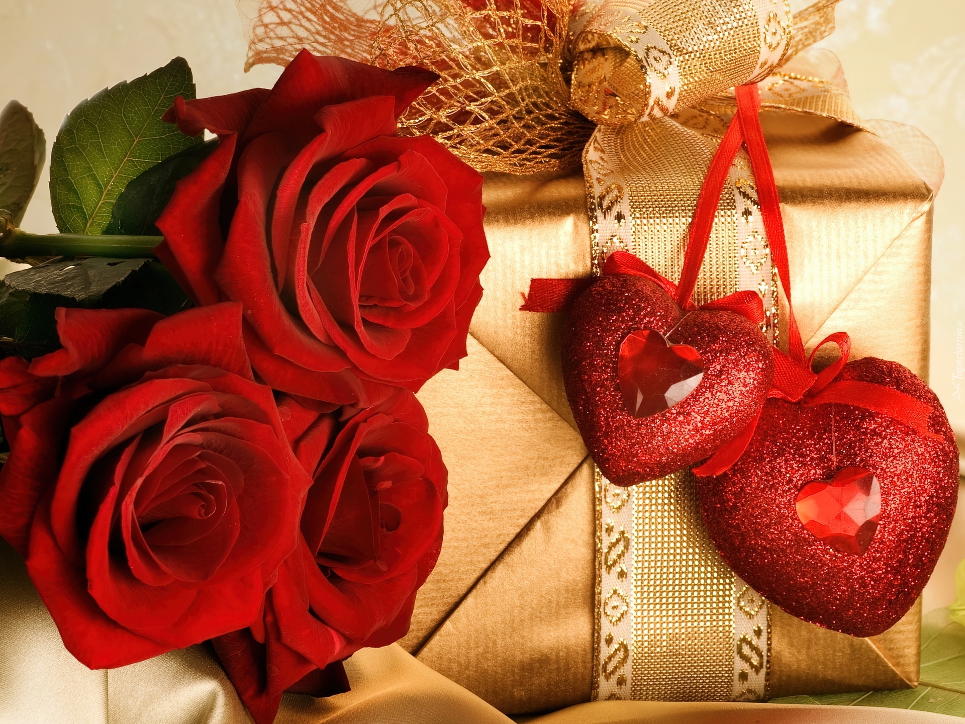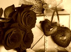 Edytor tapety: Czerwone, Róże, Prezent, Serca
