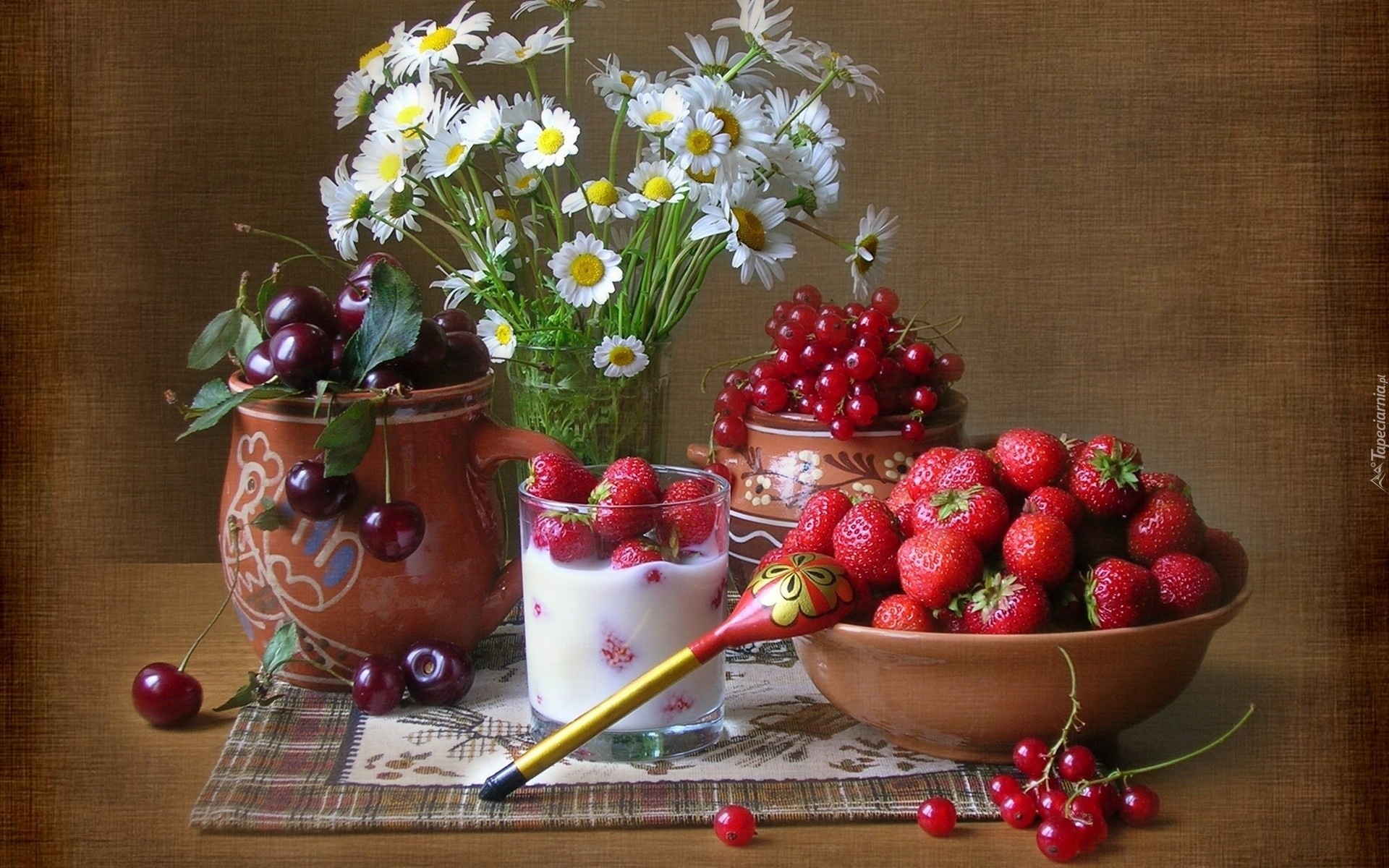 Edytor tapety: Margerytki, Truskawki, Czereśnie, Porzeczki