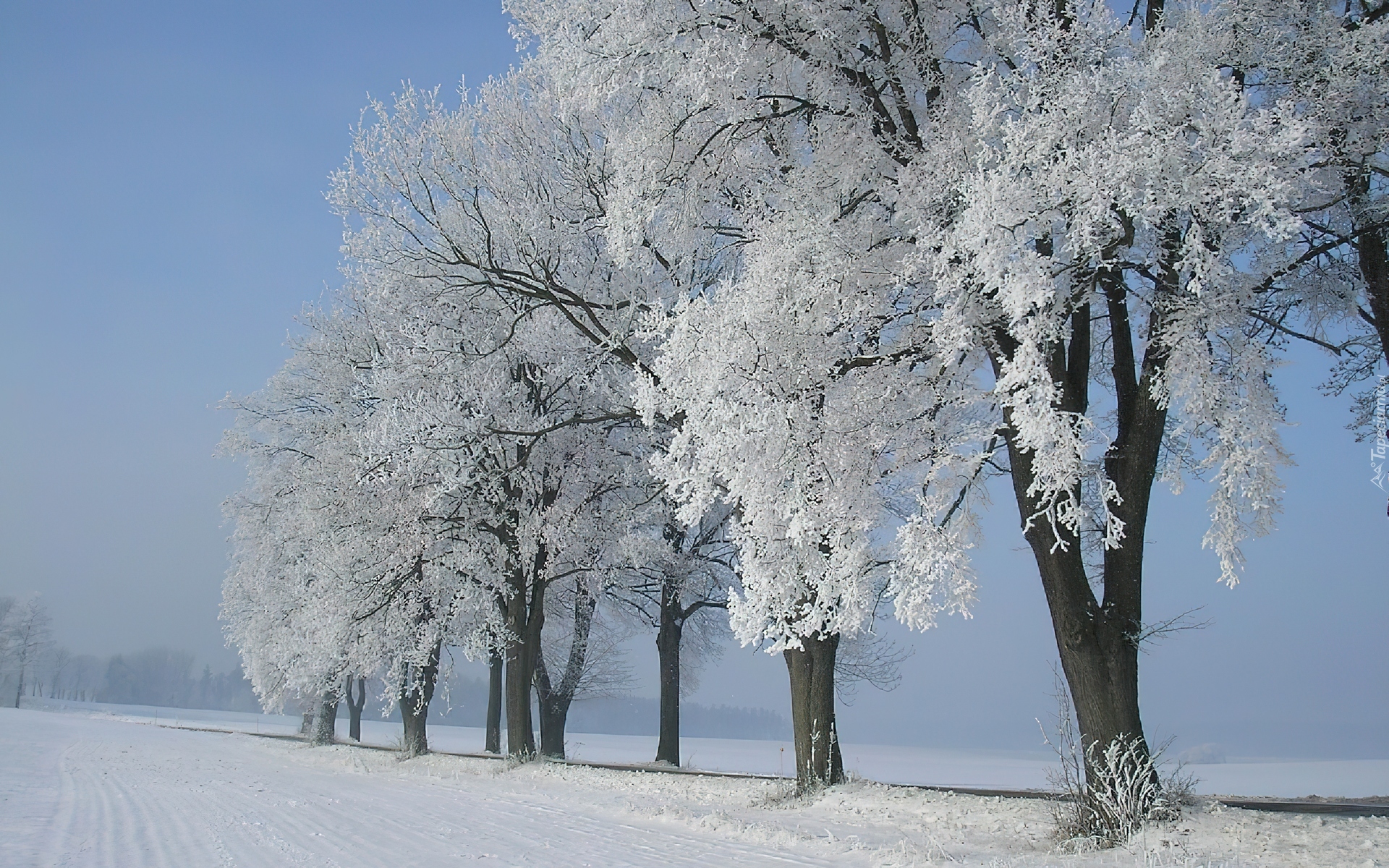 Edytor tapety: Oszronione, Drzewa, Pole, Niebo
