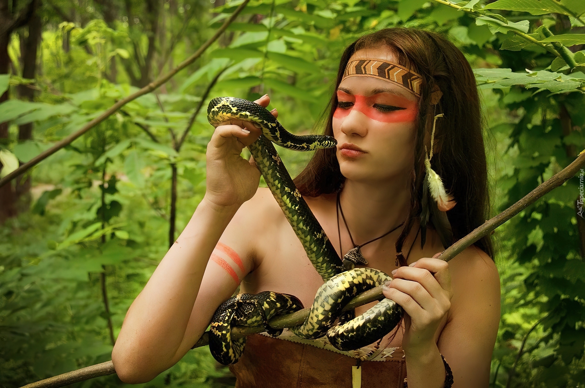 Edytor tapety: Dziewczyna, Wąż, Las