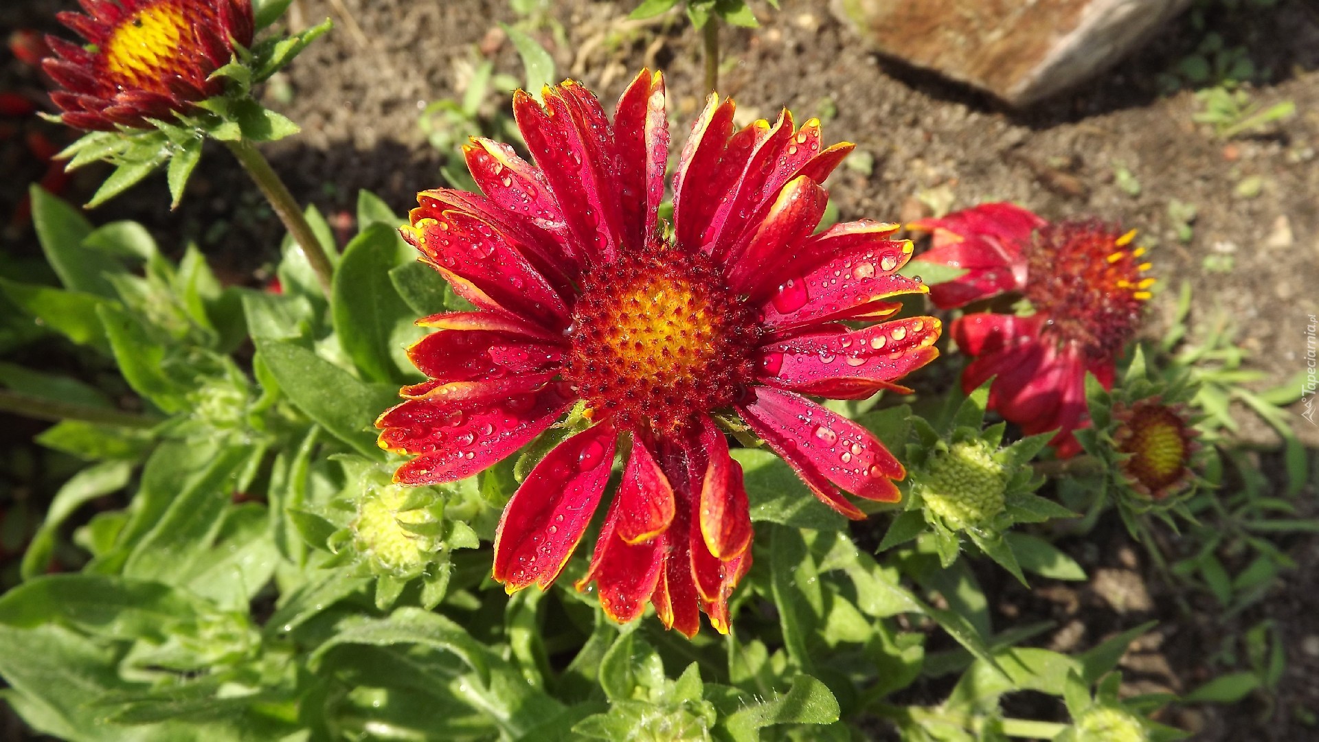 Edytor tapety: Kwiat, Gailardia Oścista, Krople, Rosy