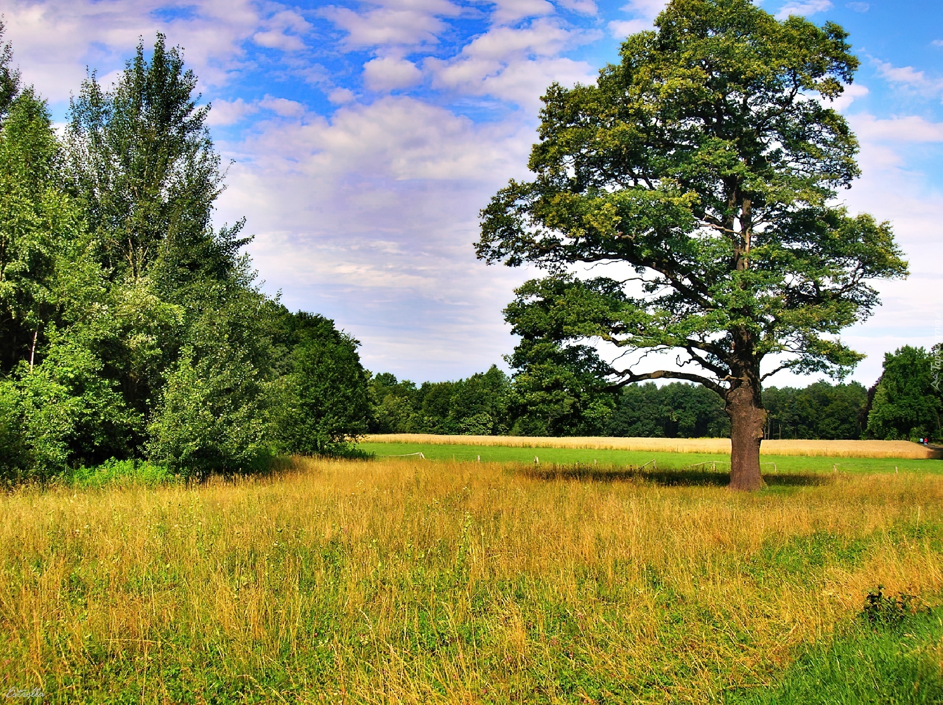 Edytor tapety: Drzewa, Polana, Chmury