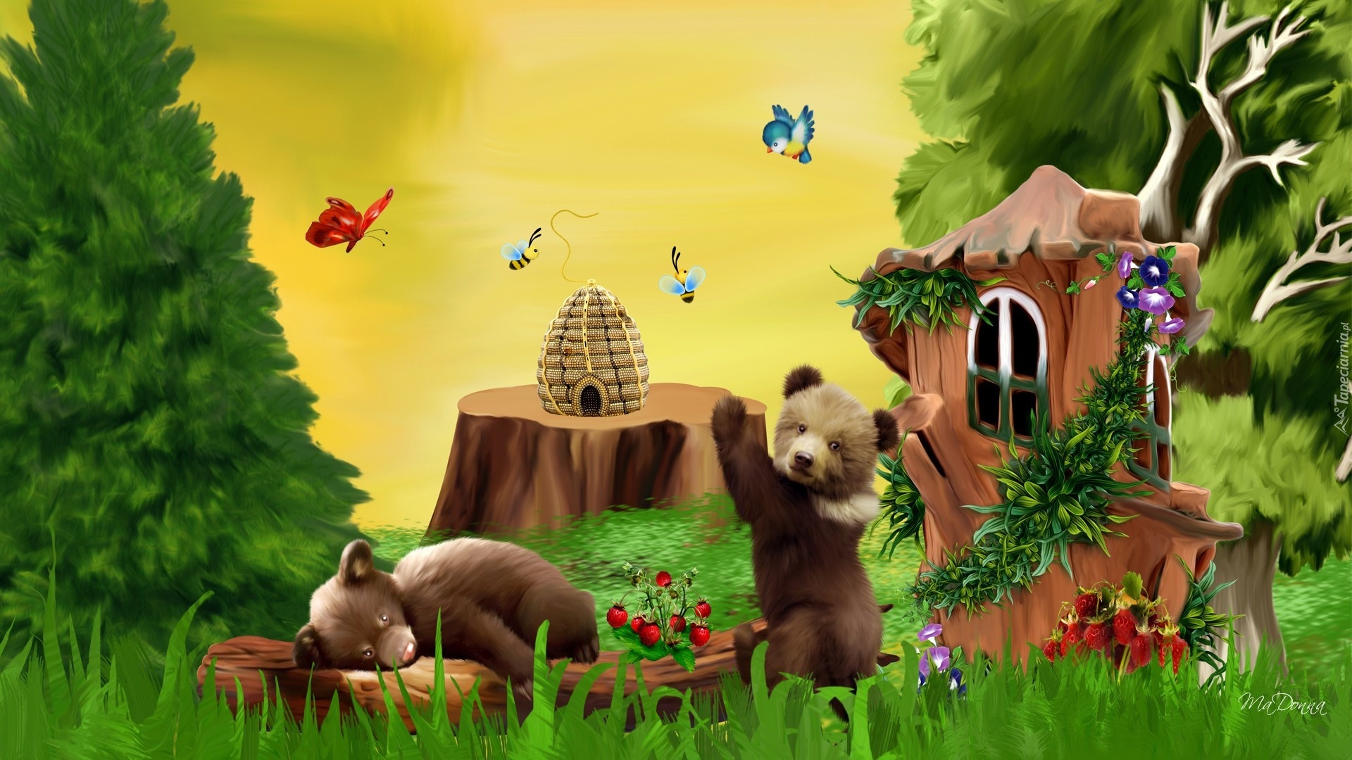 Edytor tapety: Dwa, Misie, Las, Ul