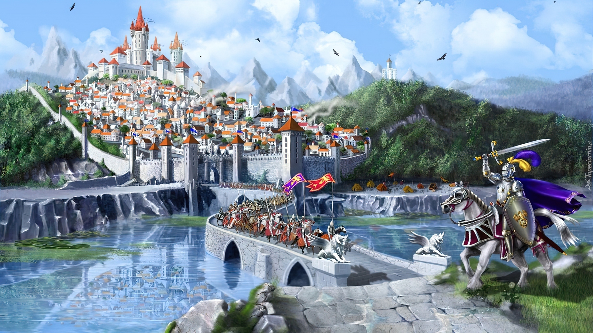 Edytor tapety: Zamek, Rzeka, Most