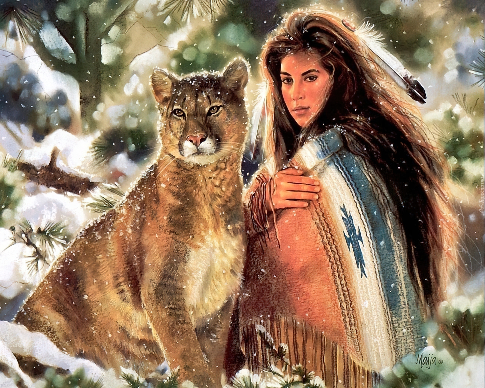 Edytor tapety: Indianka, Puma, Art