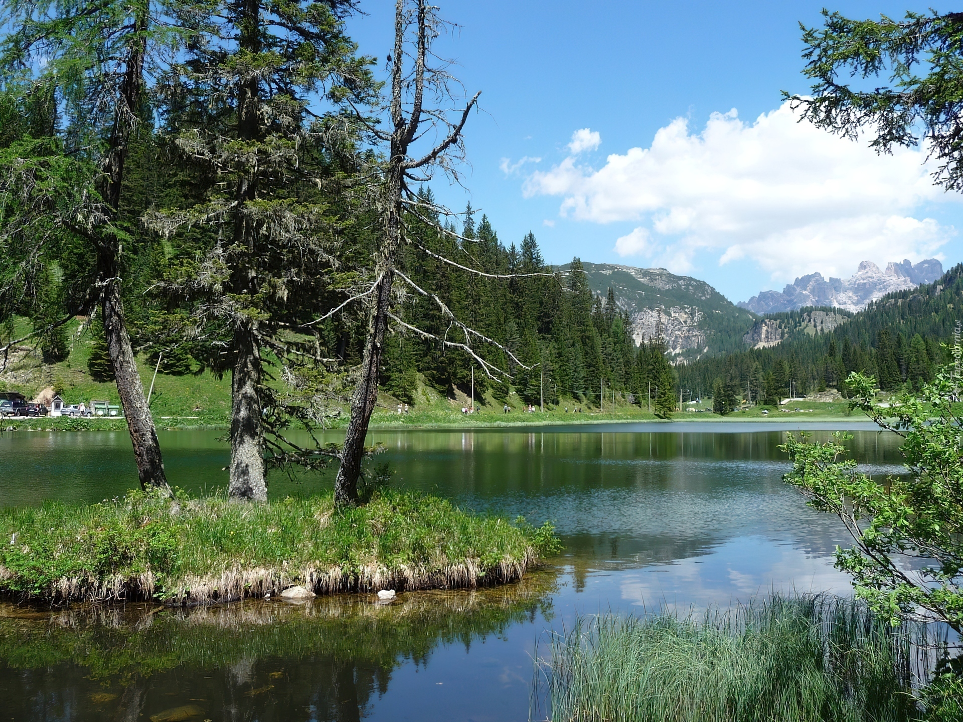 Edytor tapety: Jezioro, Wysepka, Góry
