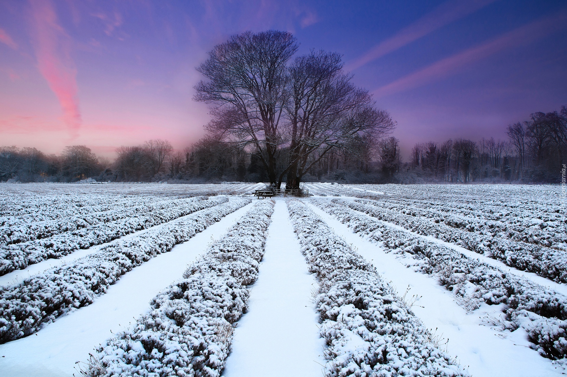 Edytor tapety: Pole, Uprawne, Śnieg, Drzewa